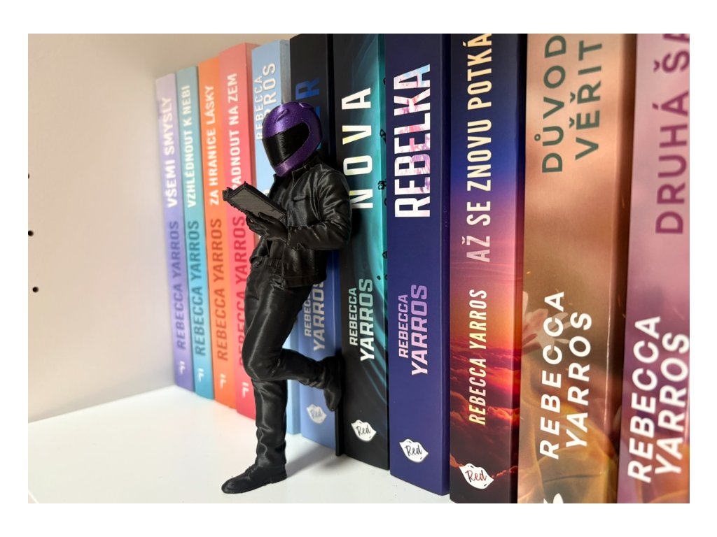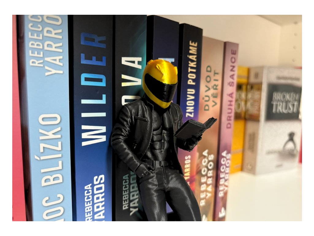 Tenhle book insert je pro čtenáře, co milují rychlost, nebezpečí a silné příběhy. Drsný motorkář s knihou přináší do knihovny napětí, energii a lehce zakázaný vibe. Okamžitě přitáhne pozornost a udělá z obyčejné police statement.