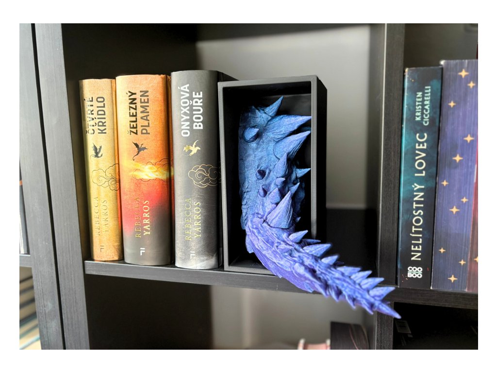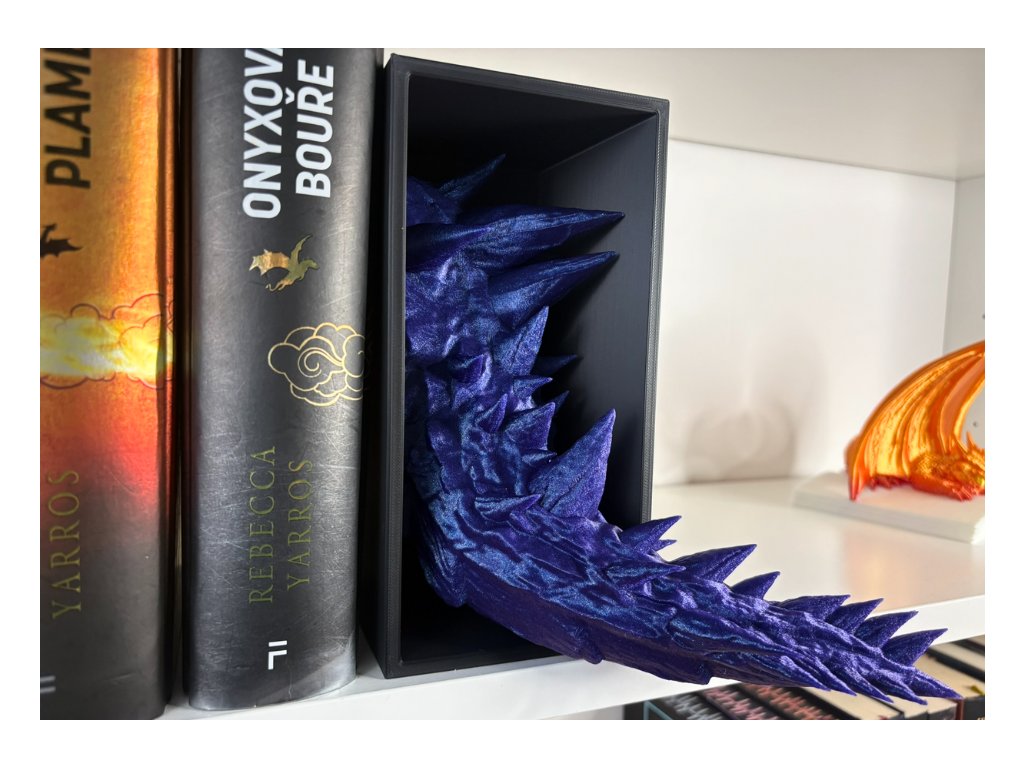 Připrav se na dechberoucí moment překvapení, kdy se mezi tvými knihami vine impozantní dračí ocas. Skvělý je právě v kombinaci s dračí hlavou - Guardian of the Tomes. Společně prolomí bariéru mezi fantasy světem a realitou. Tento 3D Book Nook neboli knižní zarážka je nejen originální dekorací, ale i mistrovským 3D tištěným kouskem, který zaujme každého fanouška fantazie a příběhů.