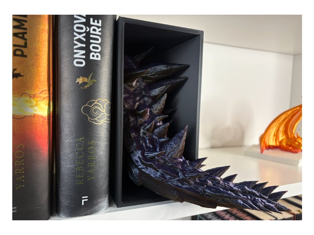 Připrav se na dechberoucí moment překvapení, kdy se mezi tvými knihami vine impozantní dračí ocas. Skvělý je právě v kombinaci s dračí hlavou - Guardian of the Tomes. Společně prolomí bariéru mezi fantasy světem a realitou. Tento 3D Book Nook neboli knižní zarážka je nejen originální dekorací, ale i mistrovským 3D tištěným kouskem, který zaujme každého fanouška fantazie a příběhů.