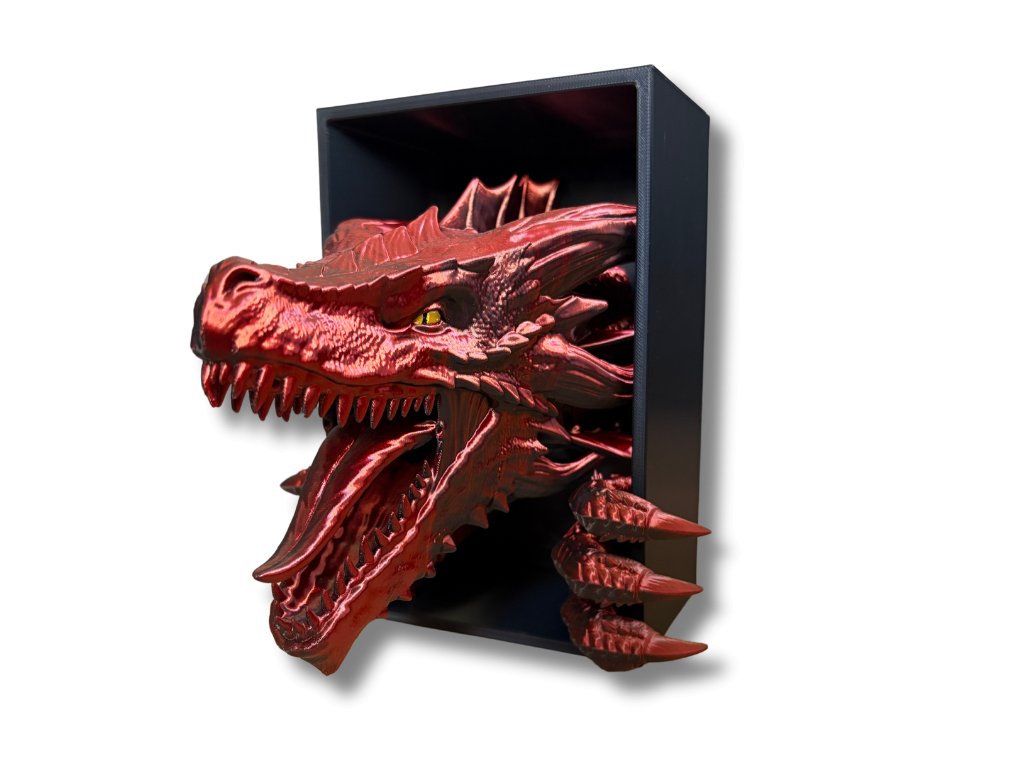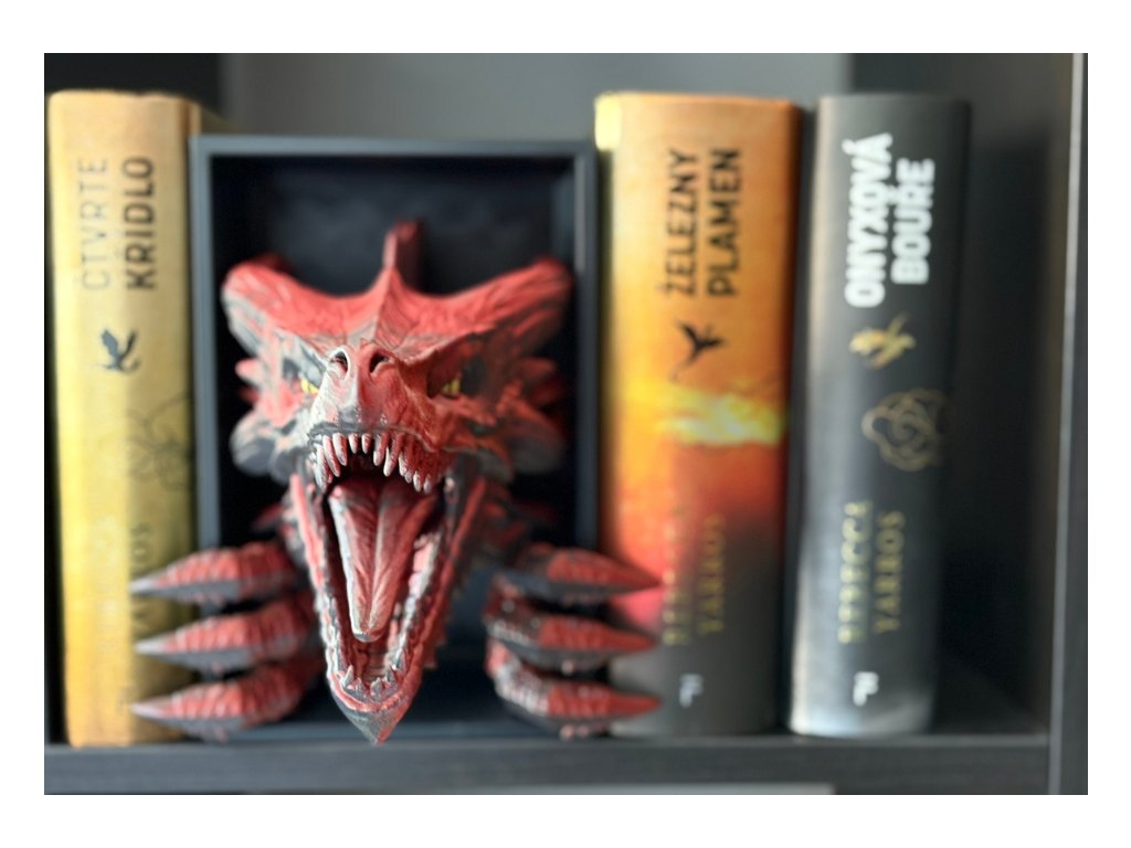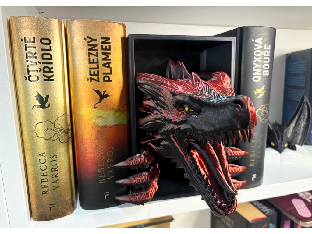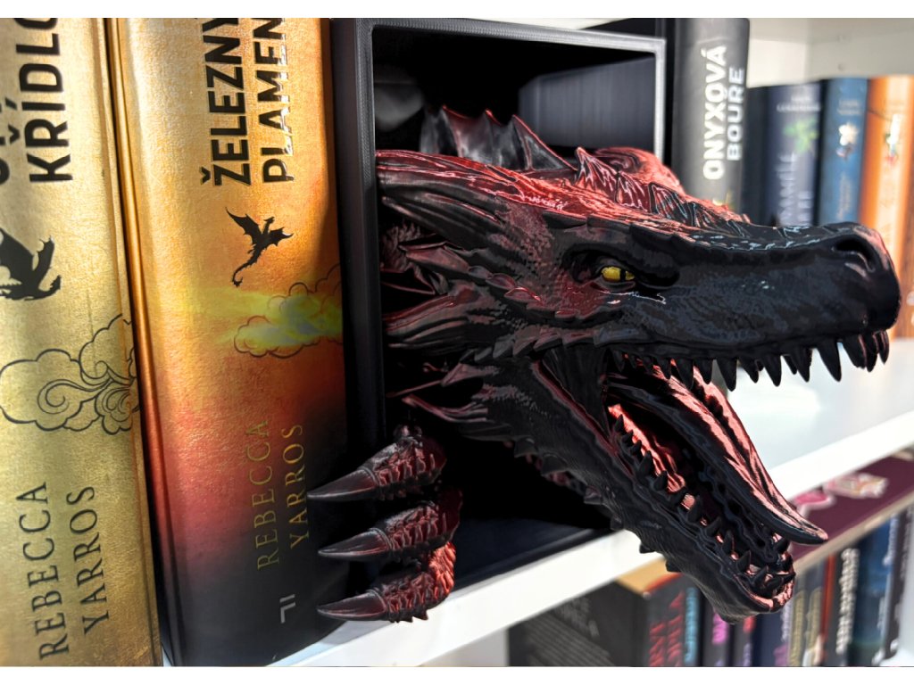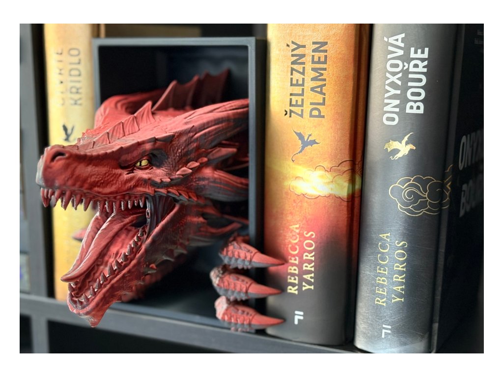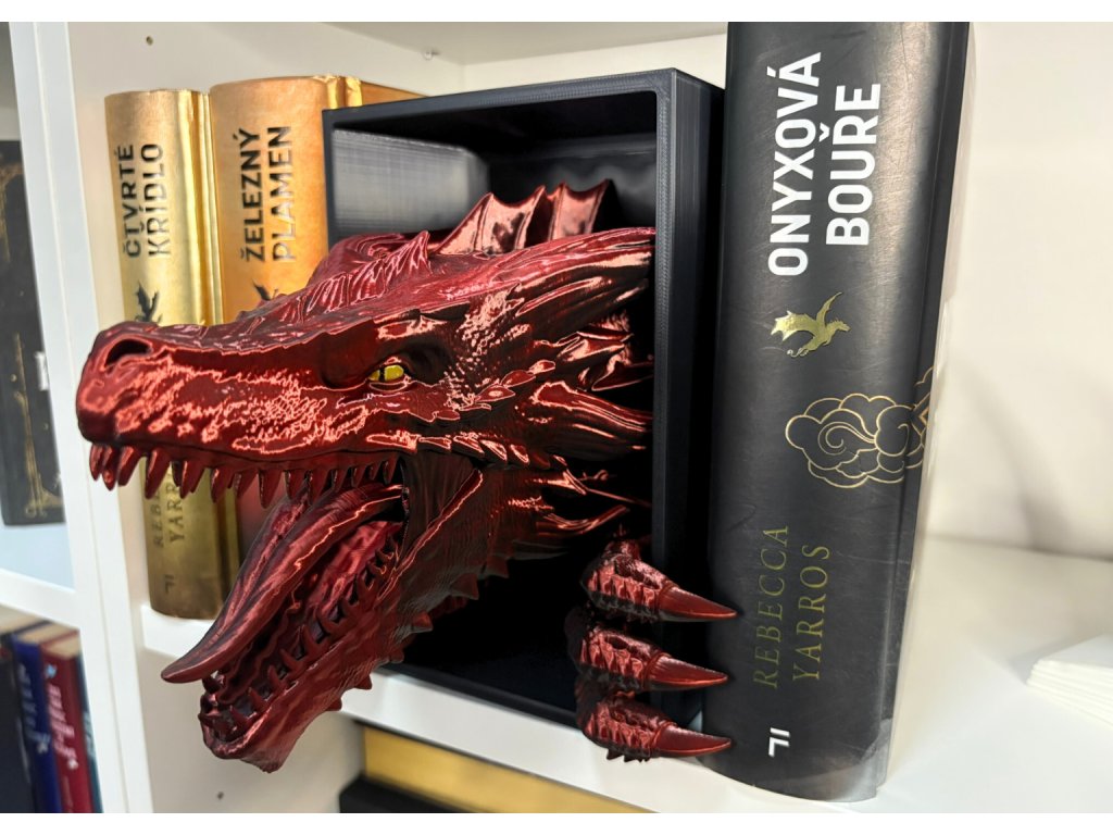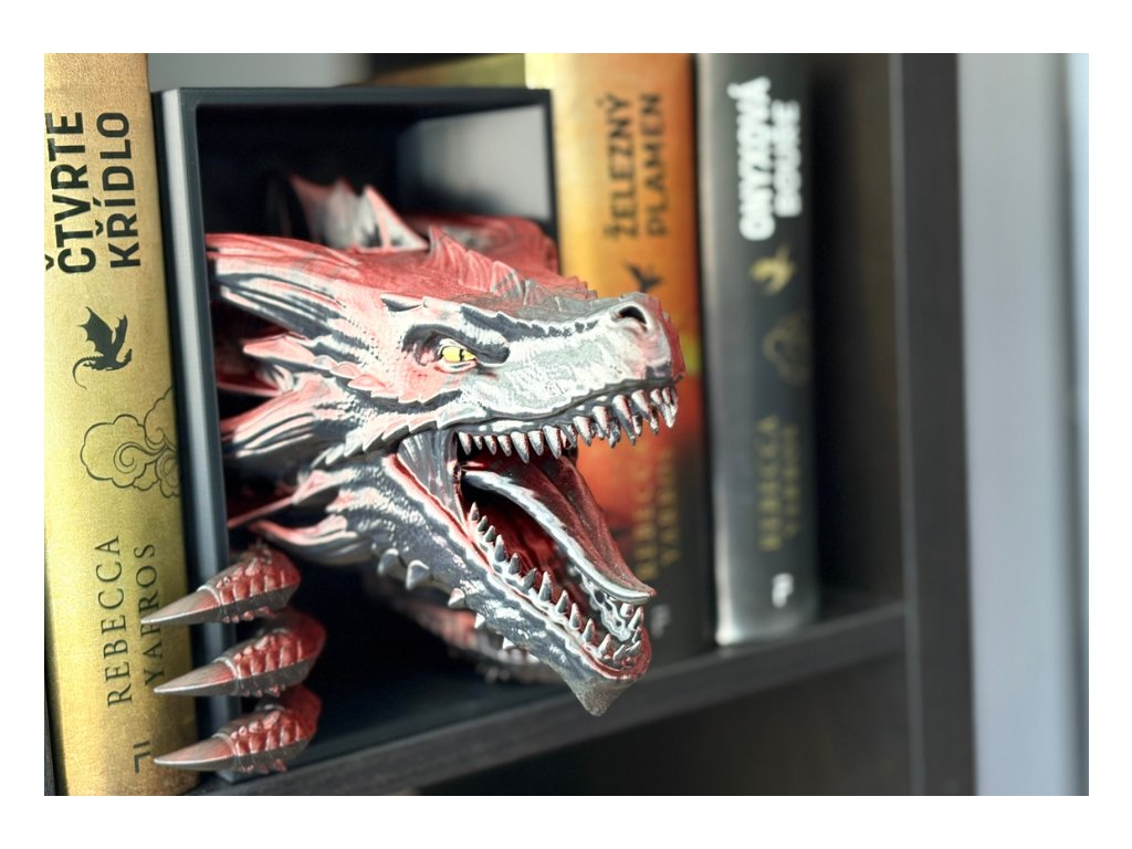 Připrav se na dechberoucí moment překvapení, kdy se mezi tvými knihami objeví dračí hlava, jakoby právě prolomila bariéru mezi fantasy světem a realitou. Tento 3D Book Nook nebo-li knižní zarážka je nejen originální dekorací, ale i mistrovským 3D tiskovým kouskem, který zaujme každého fanouška.