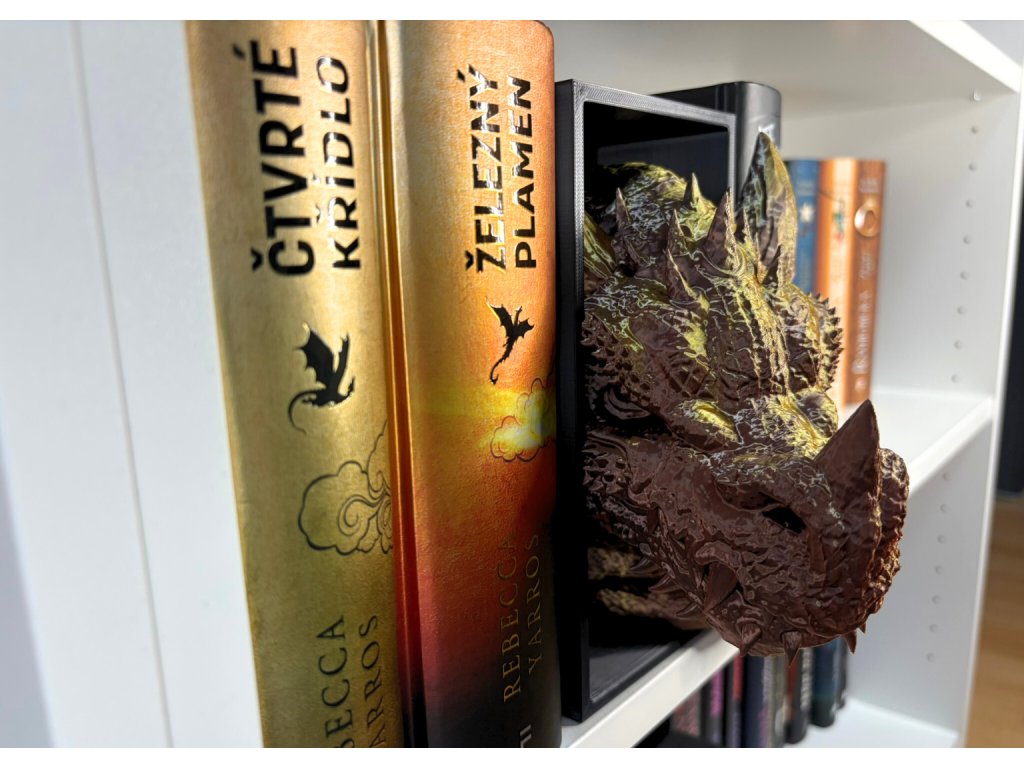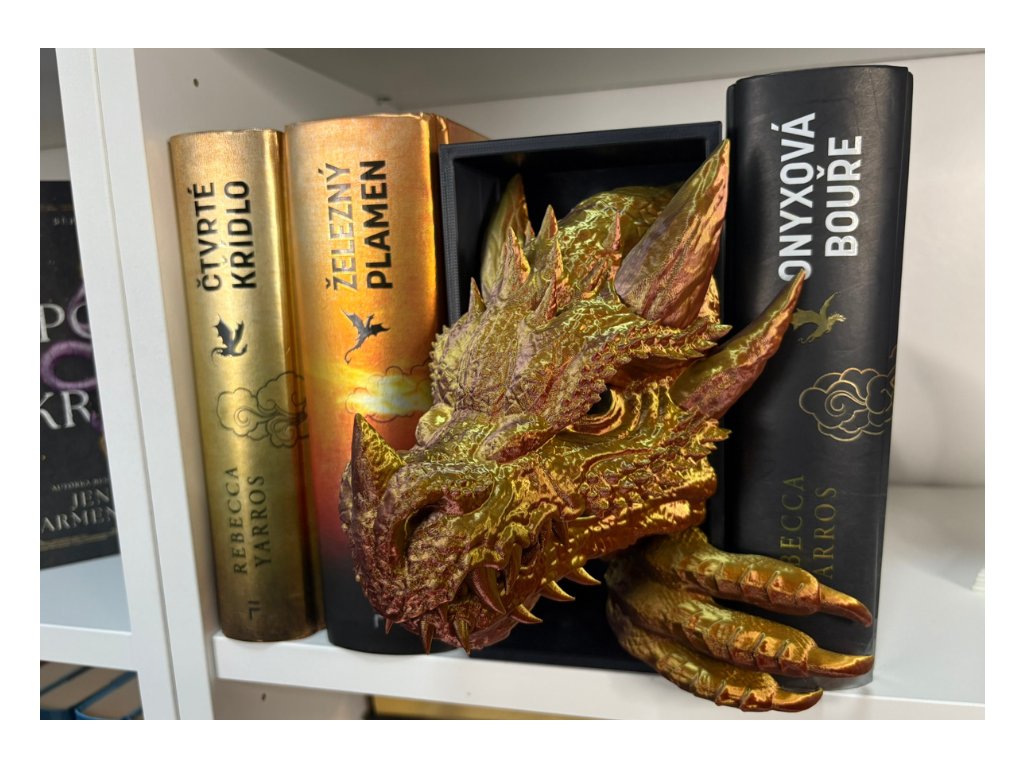 Připrav se na dechberoucí moment překvapení, kdy se mezi tvými knihami objeví dračí hlava - jakoby právě prolomila bariéru mezi fantasy světem a realitou. Tento 3D Book Nook neboli knižní zarážka, je nejen originální dekorací, ale také mistrovským 3D tištěným kouskem, který zaujme každého fanouška fantazie a příběhů.