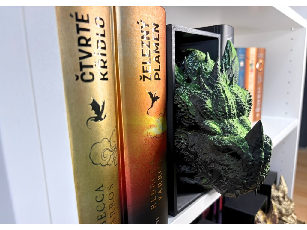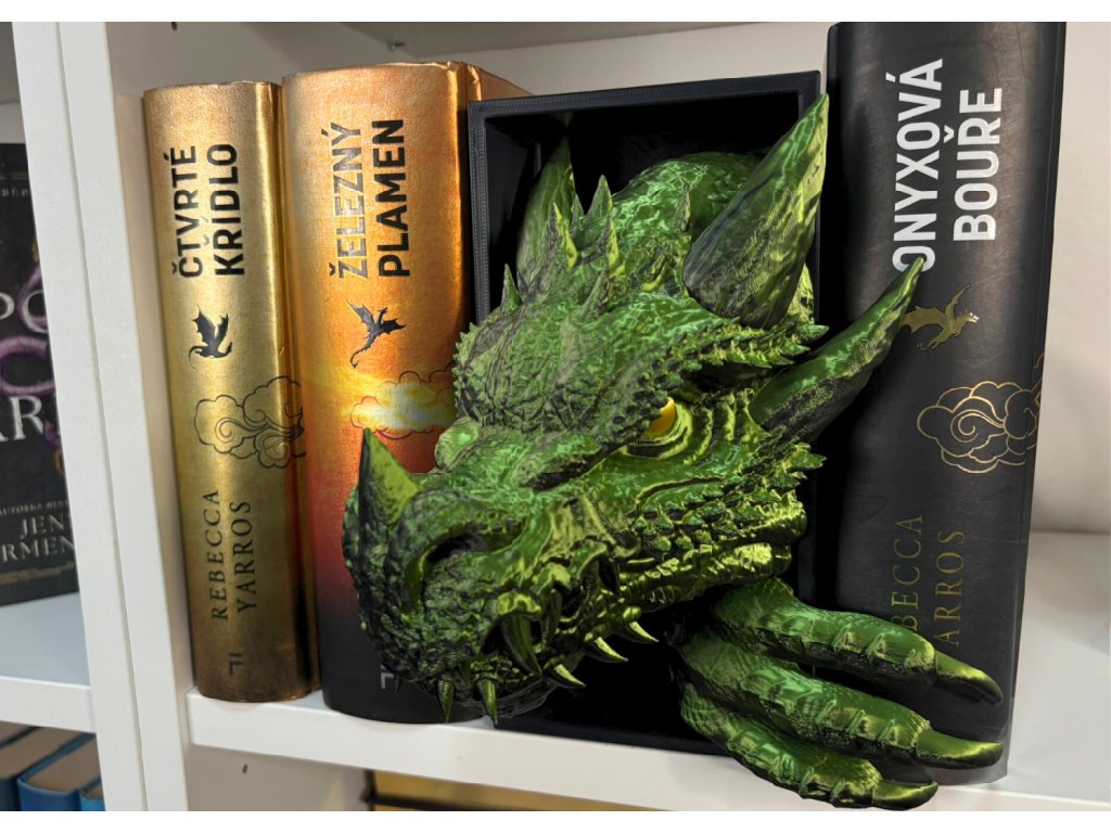 Připrav se na dechberoucí moment překvapení, kdy se mezi tvými knihami objeví dračí hlava - jakoby právě prolomila bariéru mezi fantasy světem a realitou. Tento 3D Book Nook neboli knižní zarážka, je nejen originální dekorací, ale také mistrovským 3D tištěným kouskem, který zaujme každého fanouška fantazie a příběhů.