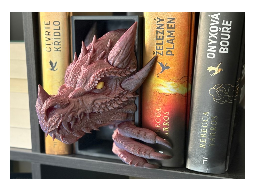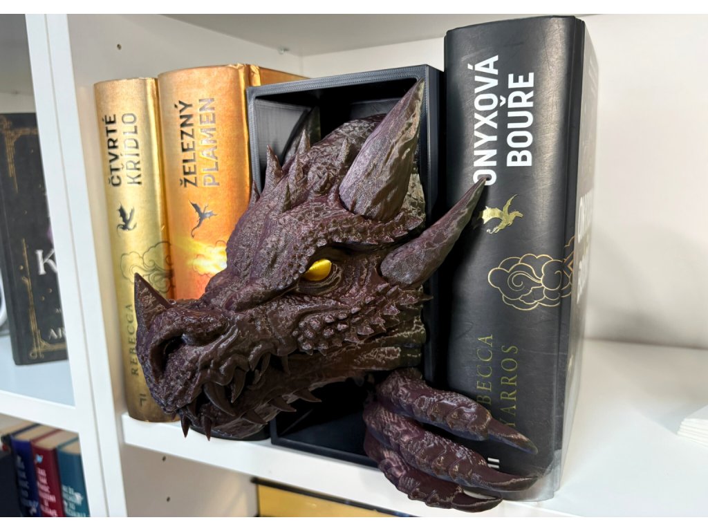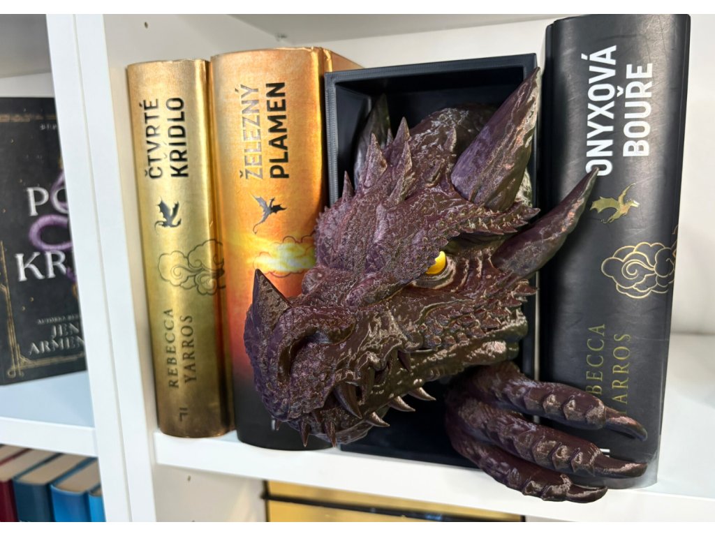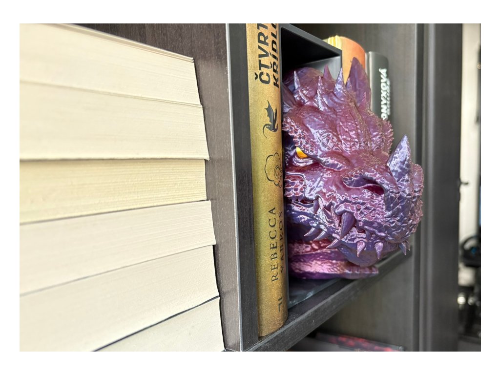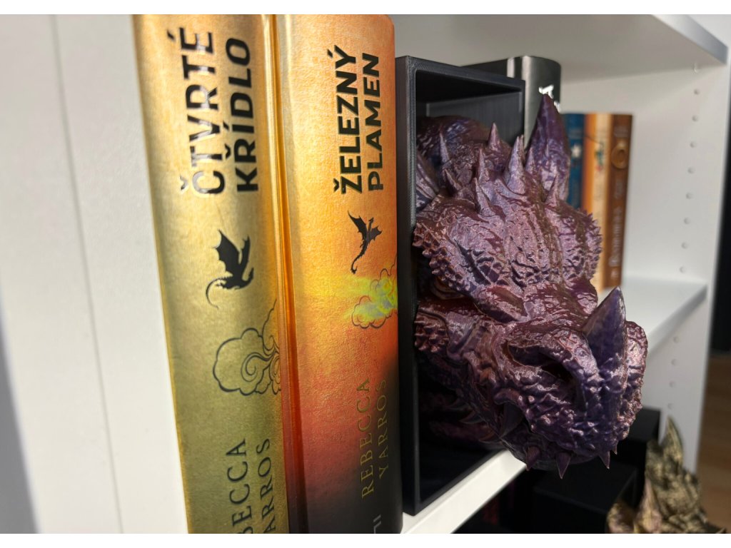Připrav se na dechberoucí moment překvapení, kdy se mezi tvými knihami objeví dračí hlava - jakoby právě prolomila bariéru mezi fantasy světem a realitou. Tento 3D Book Nook neboli knižní zarážka, je nejen originální dekorací, ale také mistrovským 3D tištěným kouskem, který zaujme každého fanouška fantazie a příběhů.