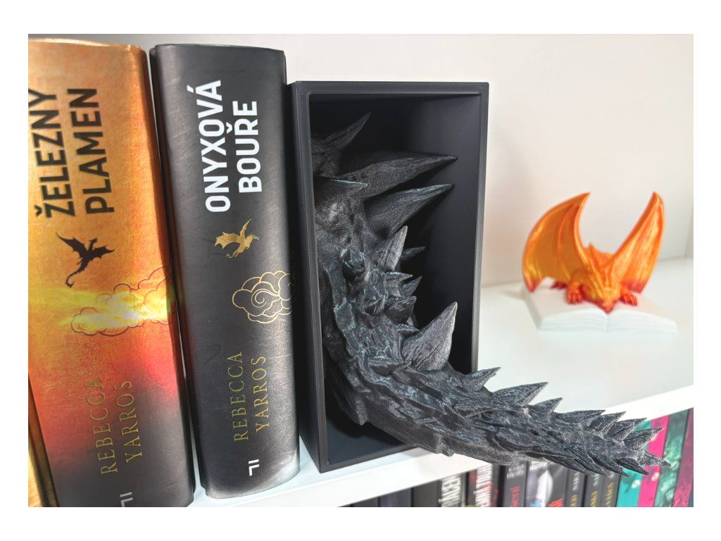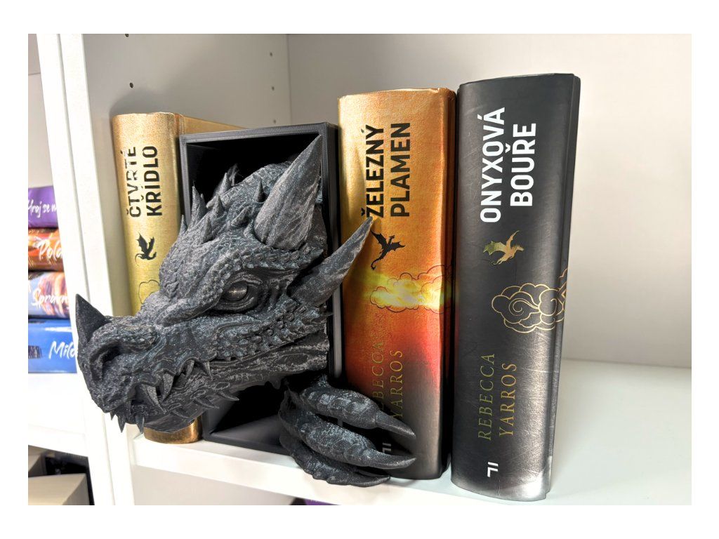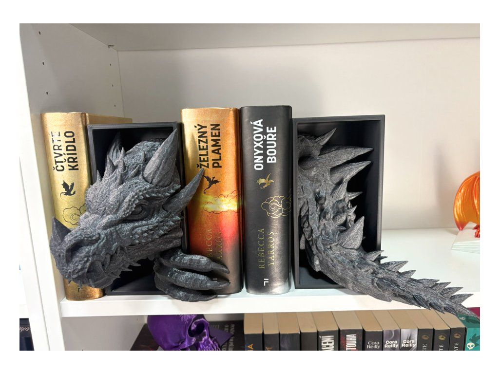 Připrav se na dechberoucí moment překvapení, kdy se mezi tvými knihami objeví dračí hlava - jakoby právě prolomila bariéru mezi fantasy světem a realitou. Tento 3D Book Nook neboli knižní zarážka, je nejen originální dekorací, ale také mistrovským 3D tištěným kouskem, který zaujme každého fanouška fantazie a příběhů.