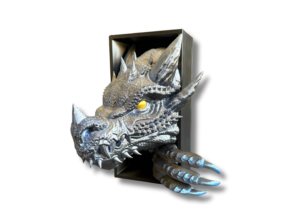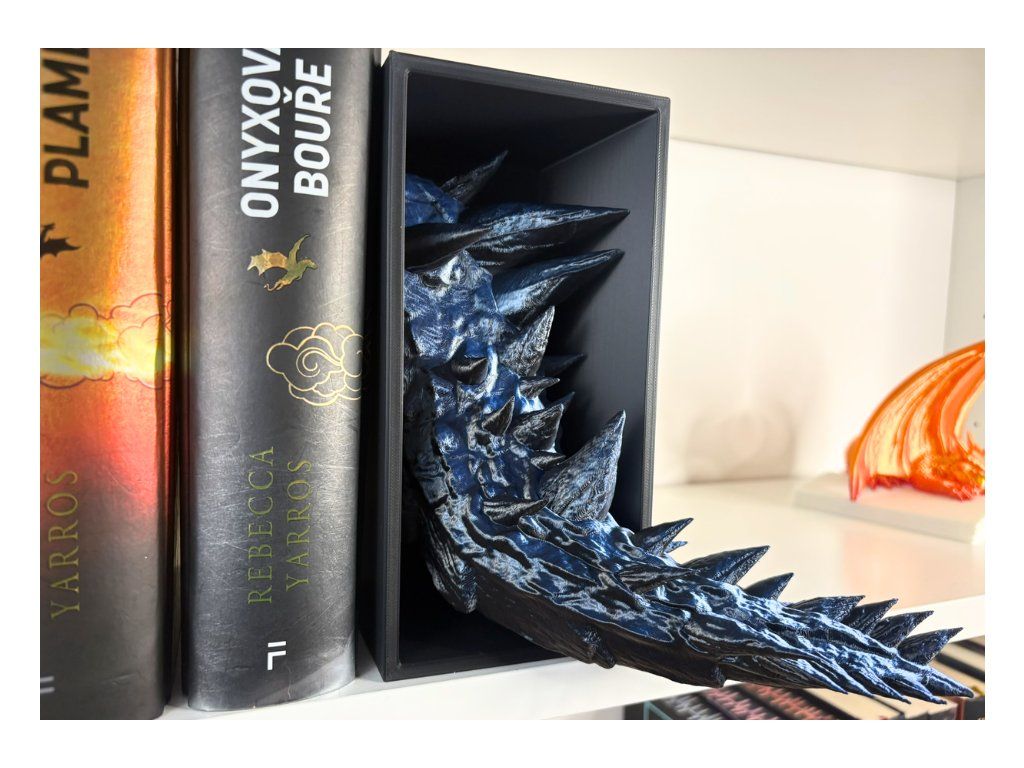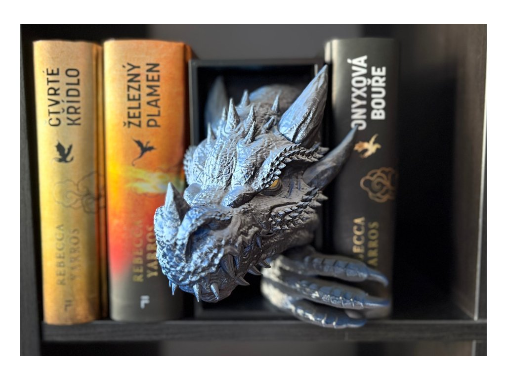 Připrav se na dechberoucí moment překvapení, kdy se mezi tvými knihami objeví dračí hlava - jakoby právě prolomila bariéru mezi fantasy světem a realitou. Tento 3D Book Nook neboli knižní zarážka, je nejen originální dekorací, ale také mistrovským 3D tištěným kouskem, který zaujme každého fanouška fantazie a příběhů.