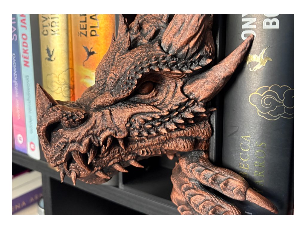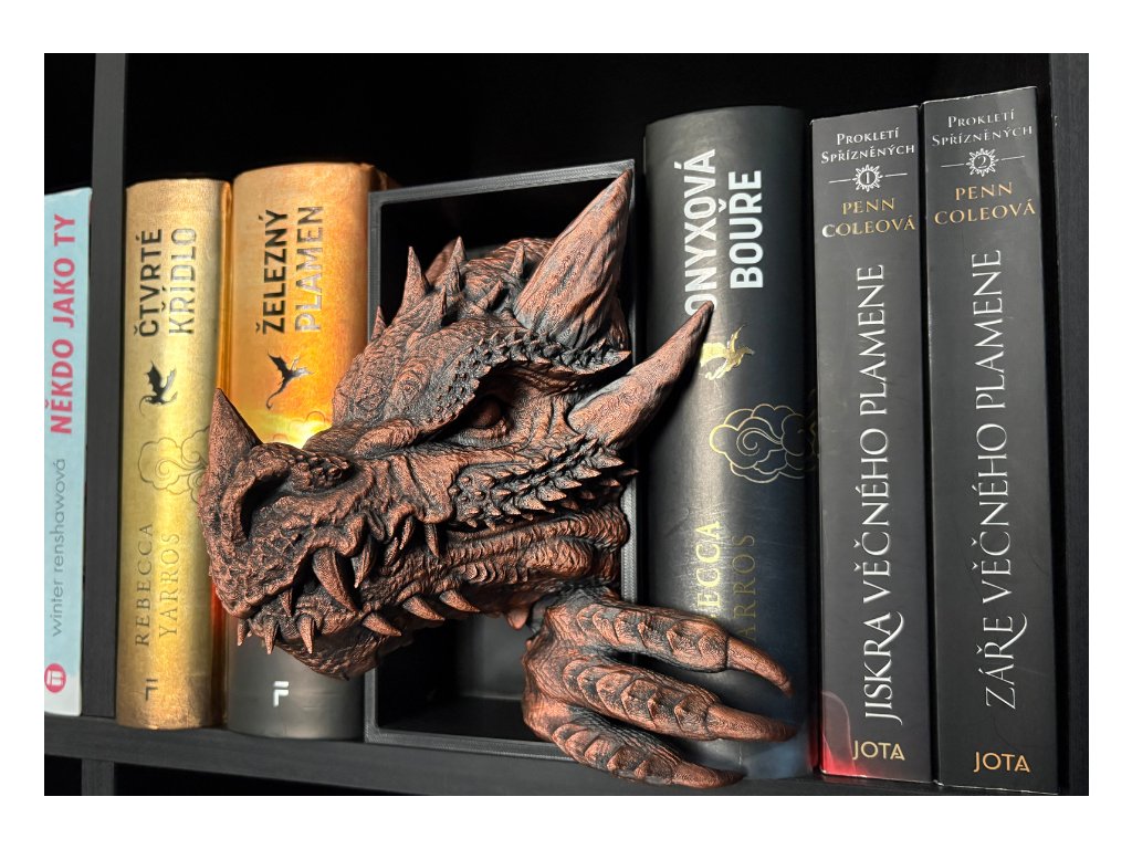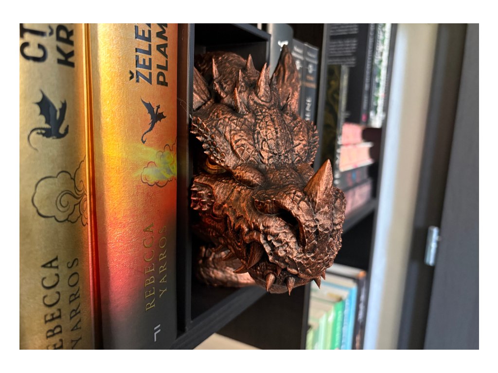 Připrav se na dechberoucí moment překvapení, kdy se mezi tvými knihami objeví dračí hlava, jakoby právě prolomila bariéru mezi fantasy světem a realitou. Tento 3D Book Nook nebo-li knižní zarážka je nejen originální dekorací, ale i mistrovským 3D tiskovým kouskem, který zaujme každého fanouška.