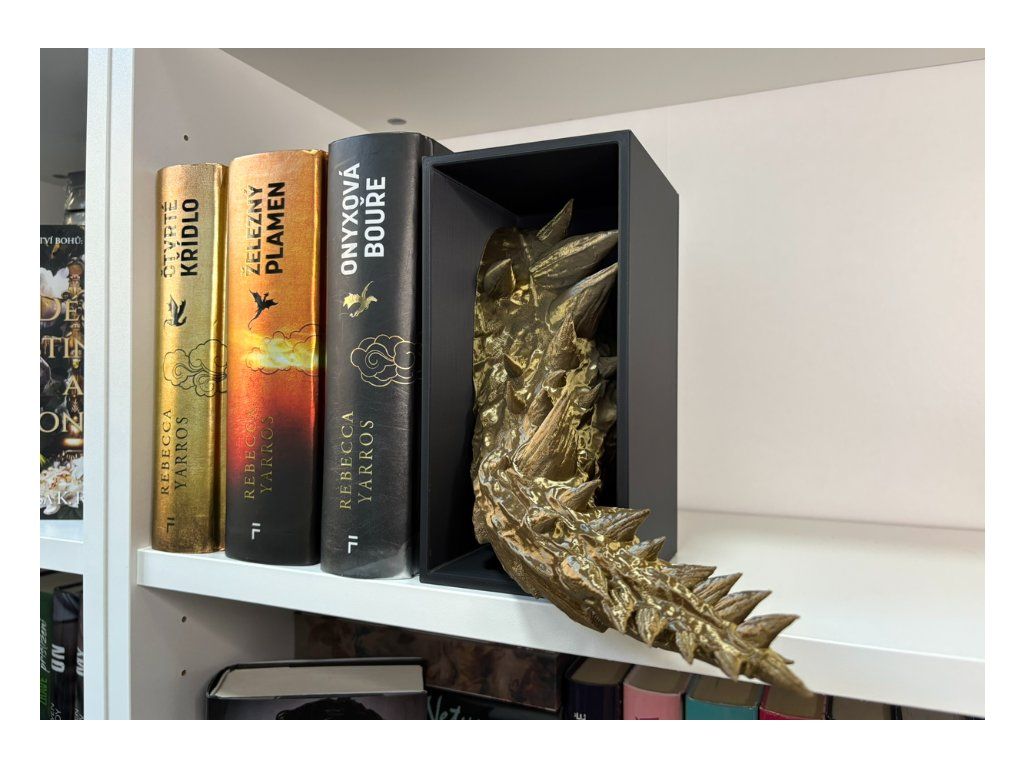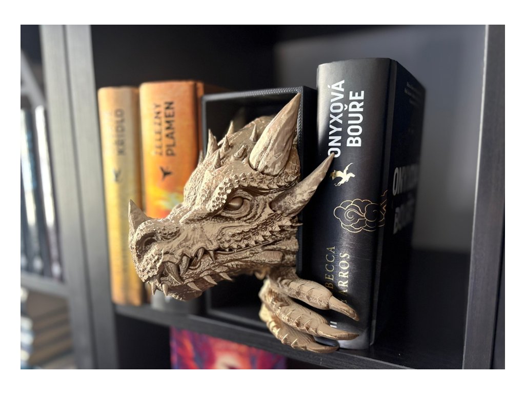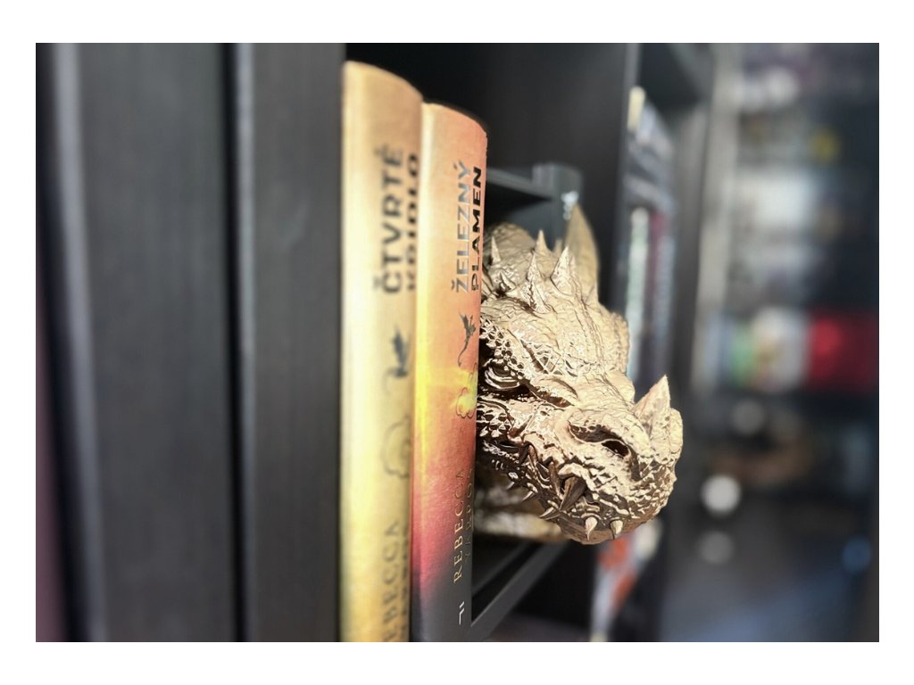Připrav se na dechberoucí moment překvapení, kdy se mezi tvými knihami objeví dračí hlava - jakoby právě prolomila bariéru mezi fantasy světem a realitou. Tento 3D Book Nook neboli knižní zarážka, je nejen originální dekorací, ale také mistrovským 3D tištěným kouskem, který zaujme každého fanouška fantazie a příběhů.