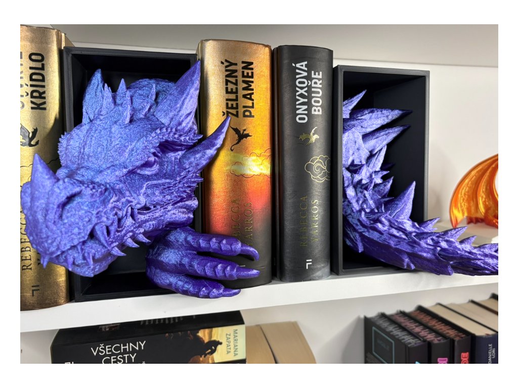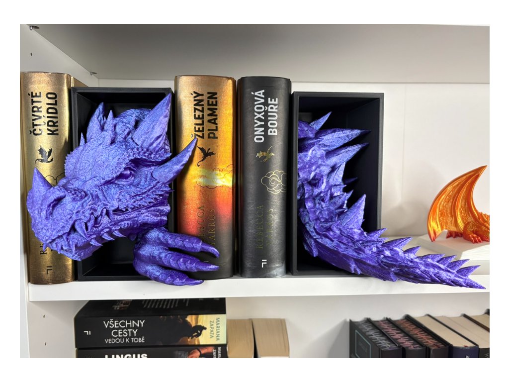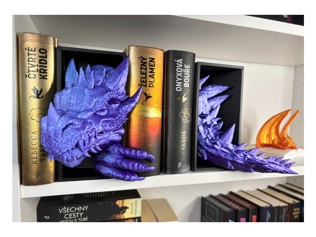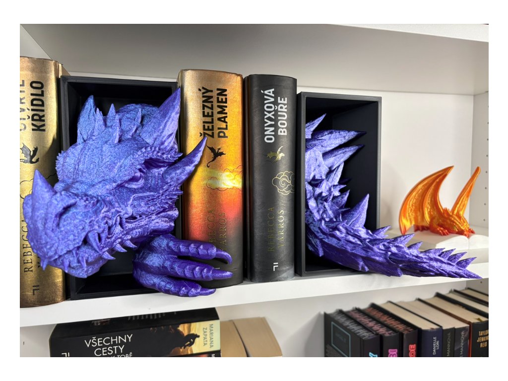 Připrav se na dechberoucí moment překvapení, kdy se mezi tvými knihami objeví dračí hlava (a o kus dál jeho oces), jakoby právě prolomila bariéru mezi fantasy světem a realitou. Tento 3D Book Nook nebo-li knižní zarážka je nejen originální dekorací, ale i mistrovským 3D tiskovým kouskem, který zaujme každého fanouška.