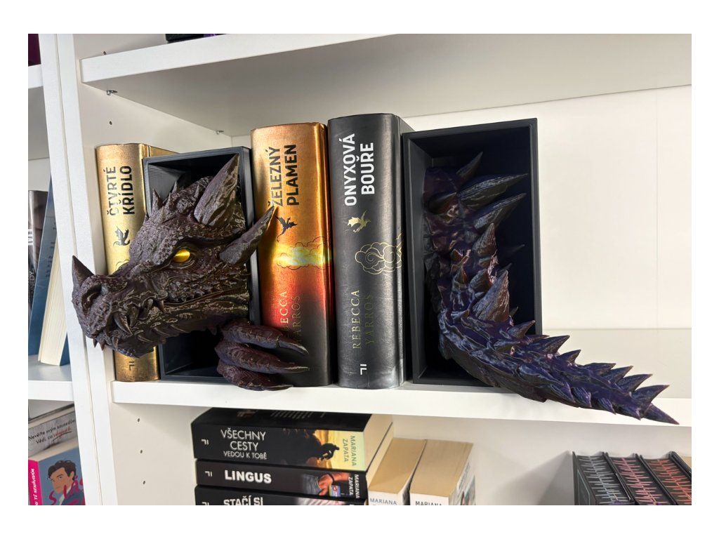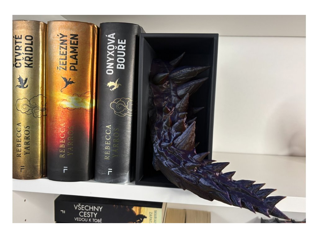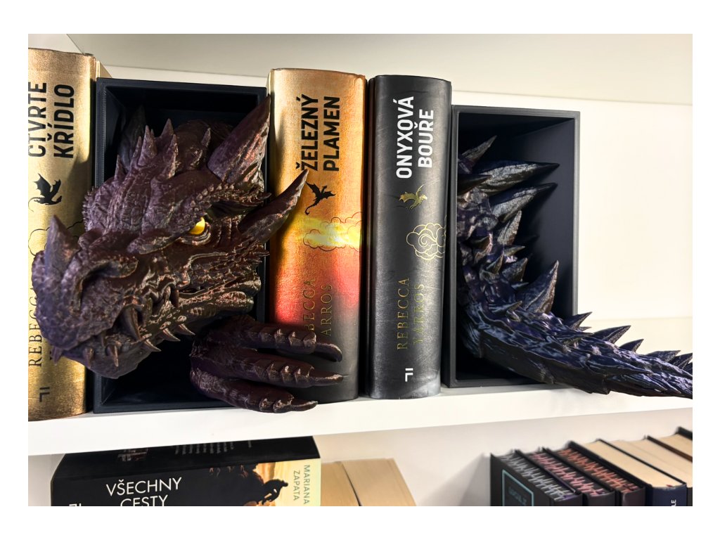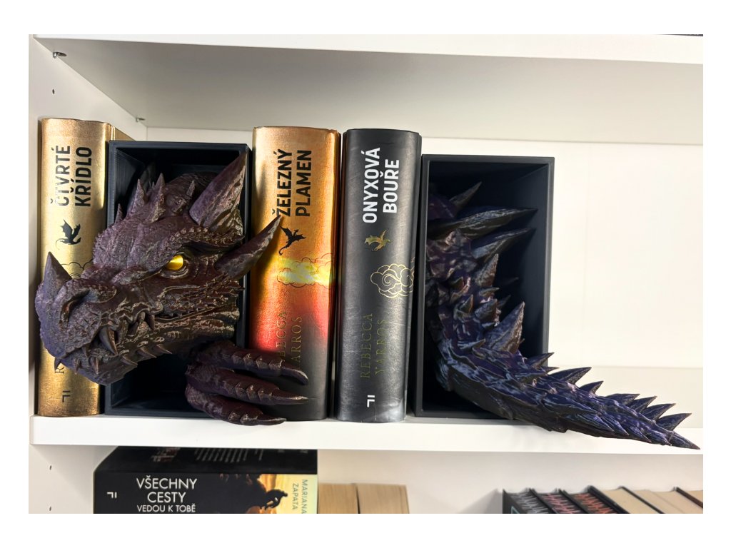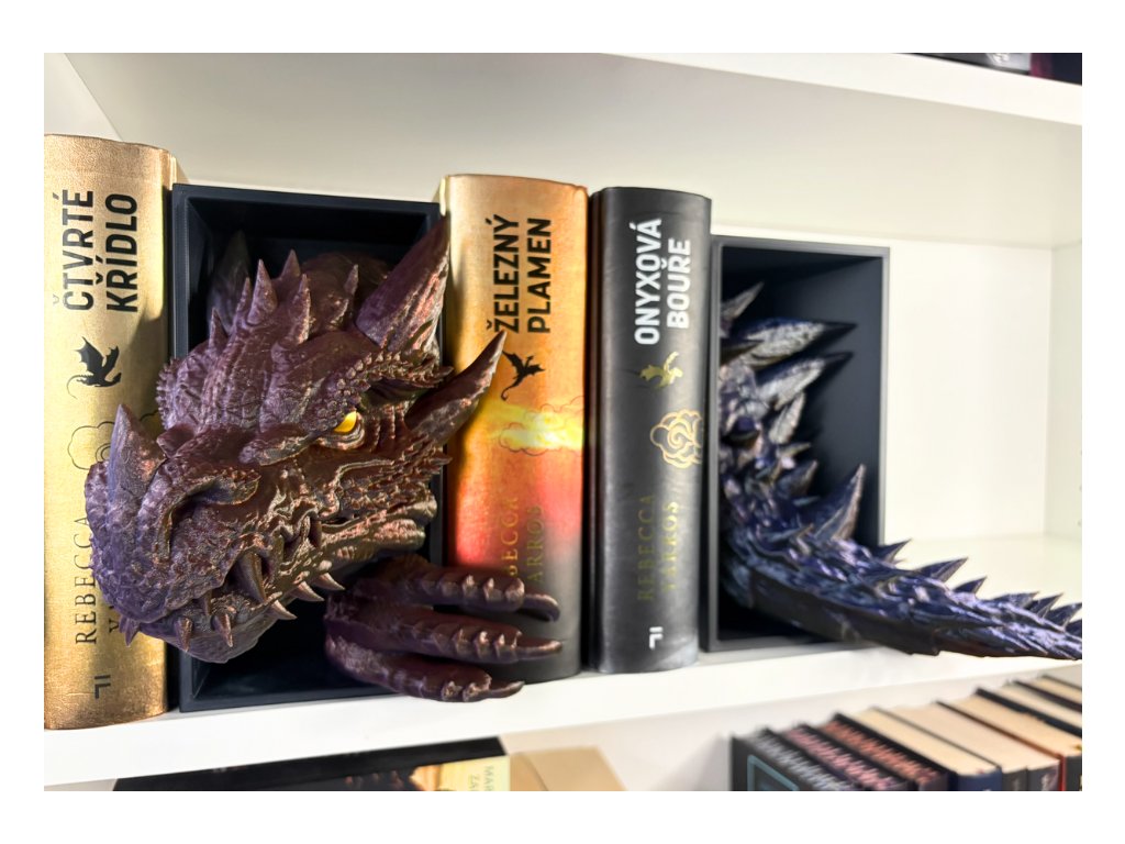 Připrav se na dechberoucí moment překvapení, kdy se mezi tvými knihami objeví dračí hlava (a o kus dál jeho oces), jakoby právě prolomila bariéru mezi fantasy světem a realitou. Tento 3D Book Nook nebo-li knižní zarážka je nejen originální dekorací, ale i mistrovským 3D tiskovým kouskem, který zaujme každého fanouška.