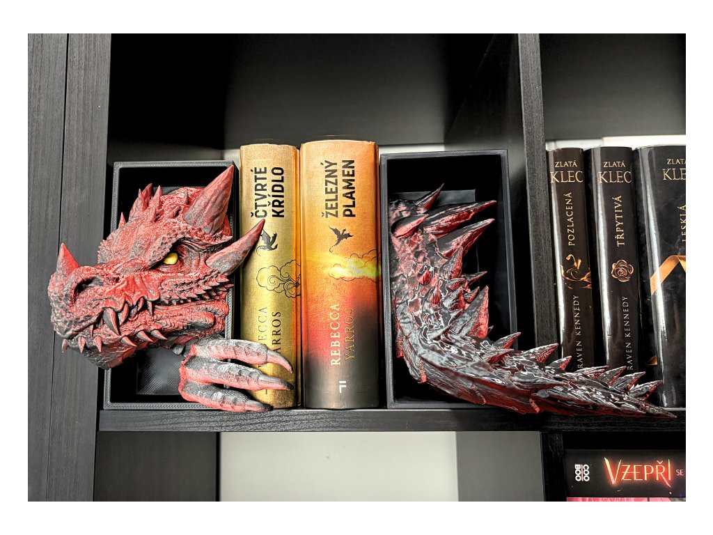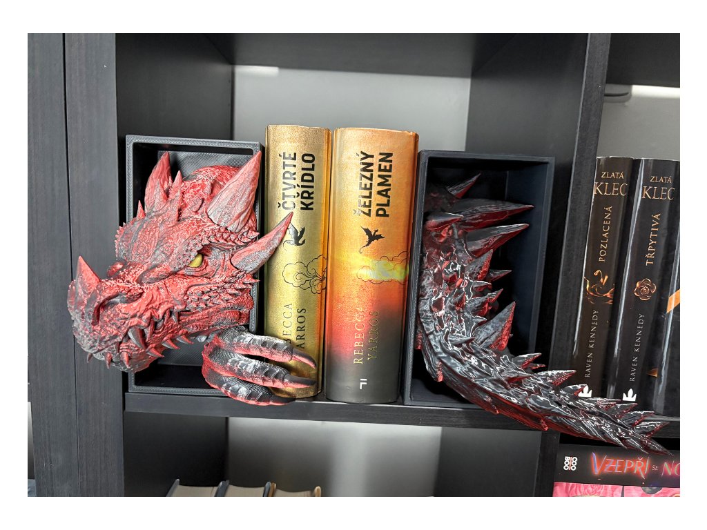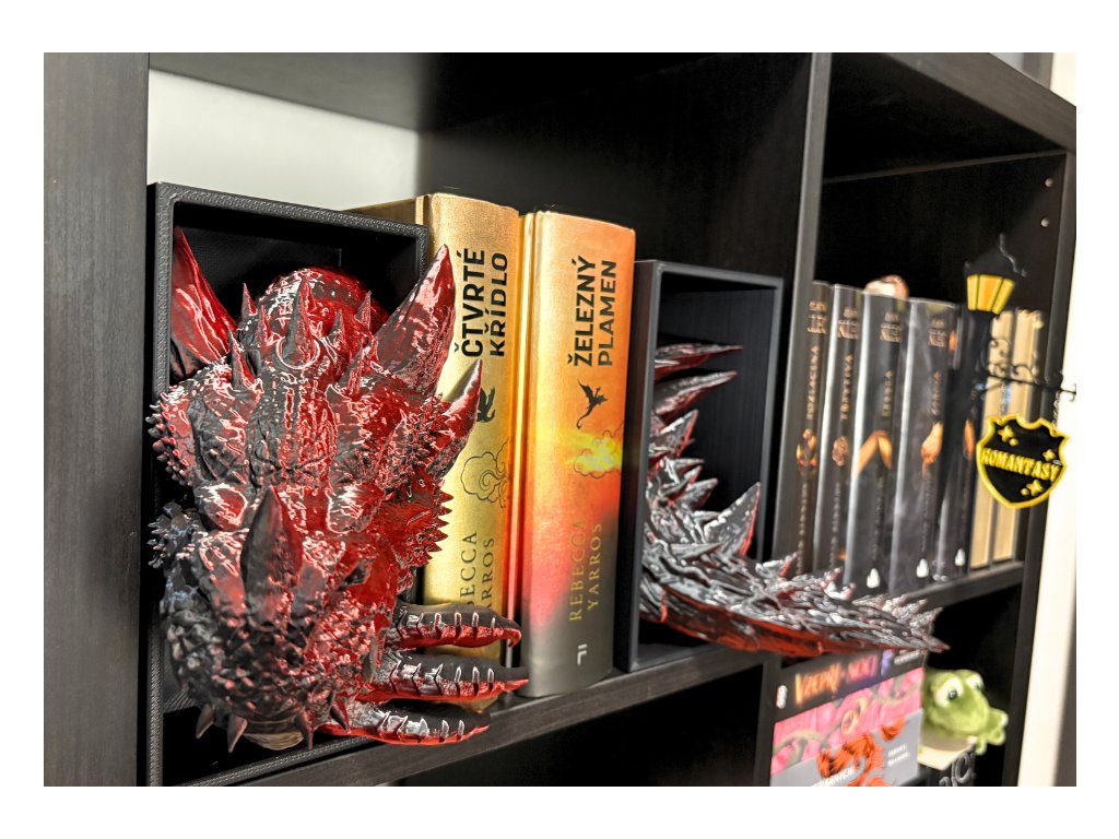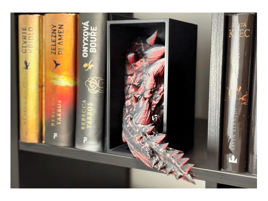 Připrav se na dechberoucí moment překvapení, kdy se mezi tvými knihami objeví dračí hlava (a o kus dál jeho oces), jakoby právě prolomila bariéru mezi fantasy světem a realitou. Tento 3D Book Nook nebo-li knižní zarážka je nejen originální dekorací, ale i mistrovským 3D tiskovým kouskem, který zaujme každého fanouška.