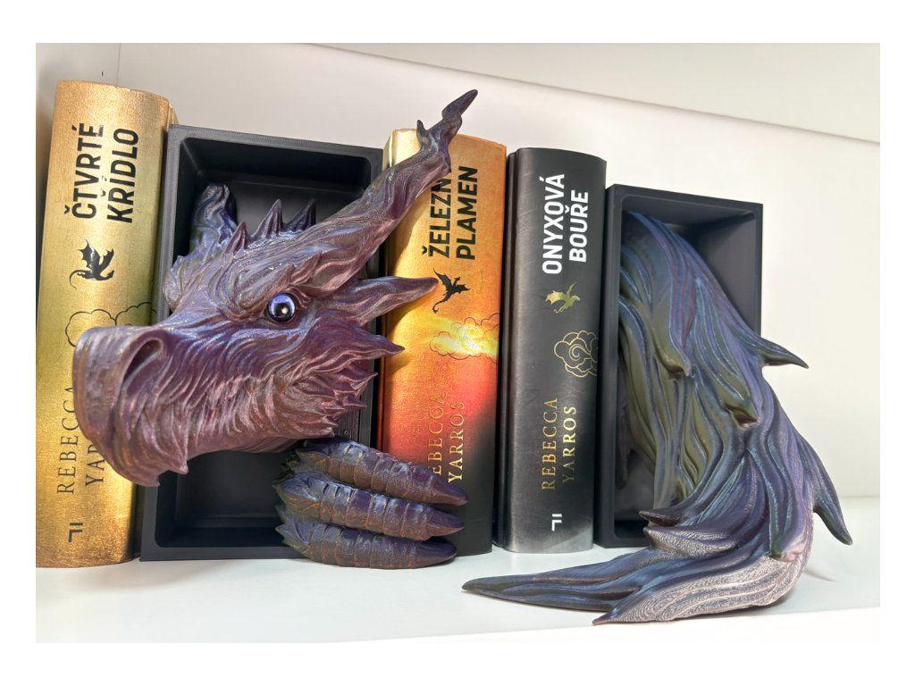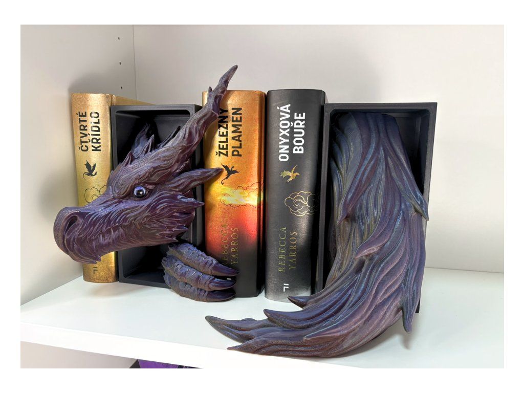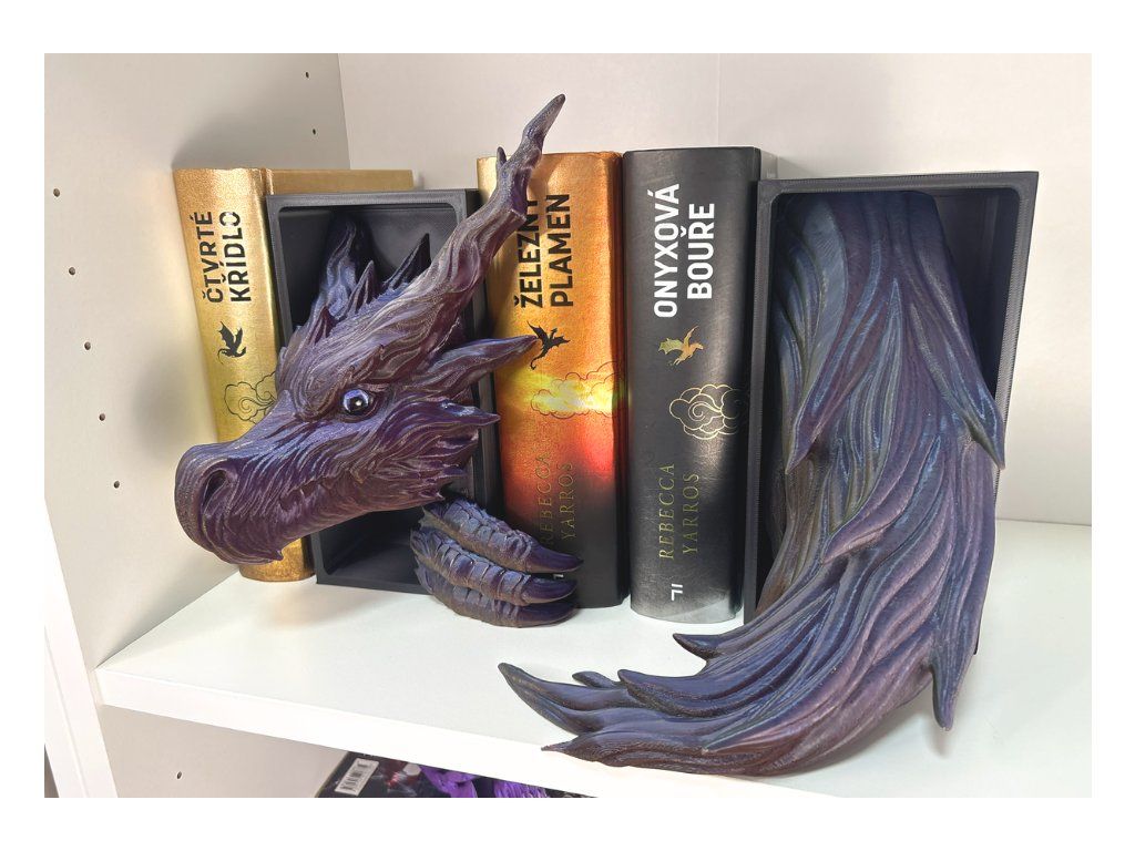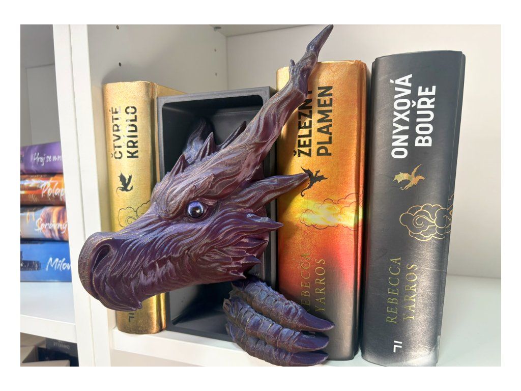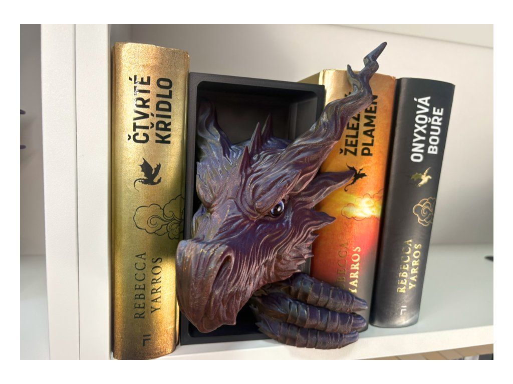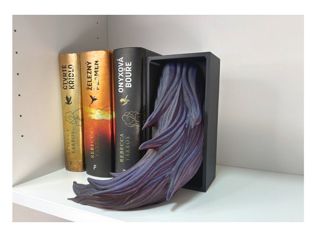 Tento dračí Book Nook přináší do knihovny temnou eleganci a nádech dávného tajemství. Drak stínů působí, jako by se právě vynořil z hlubin příběhů a usadil se mezi tvými knihami, kde tiše střeží světy plné dobrodružství, magie a zapomenutých legend. Precizně zpracovaný 3D tisk a výrazný design vytvářejí efekt, díky kterému drak vypadá, jako by vystupoval přímo ze stínu mezi hřbety knih. Není to jen dekorace – je to strážce, který dodá knihovně atmosféru tajemství a epických příběhů.