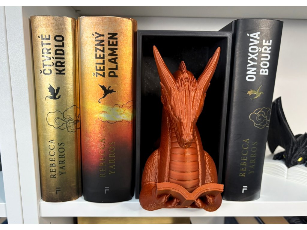 Připrav se na dechberoucí moment překvapení, kdy se mezi tvými knihami objeví dračí hlava, jakoby právě prolomila bariéru mezi fantasy světem a realitou. Tento 3D Book Nook nebo-li knižní zarážka je nejen originální dekorací, ale i mistrovským 3D tiskovým kouskem, který zaujme každého fanouška.