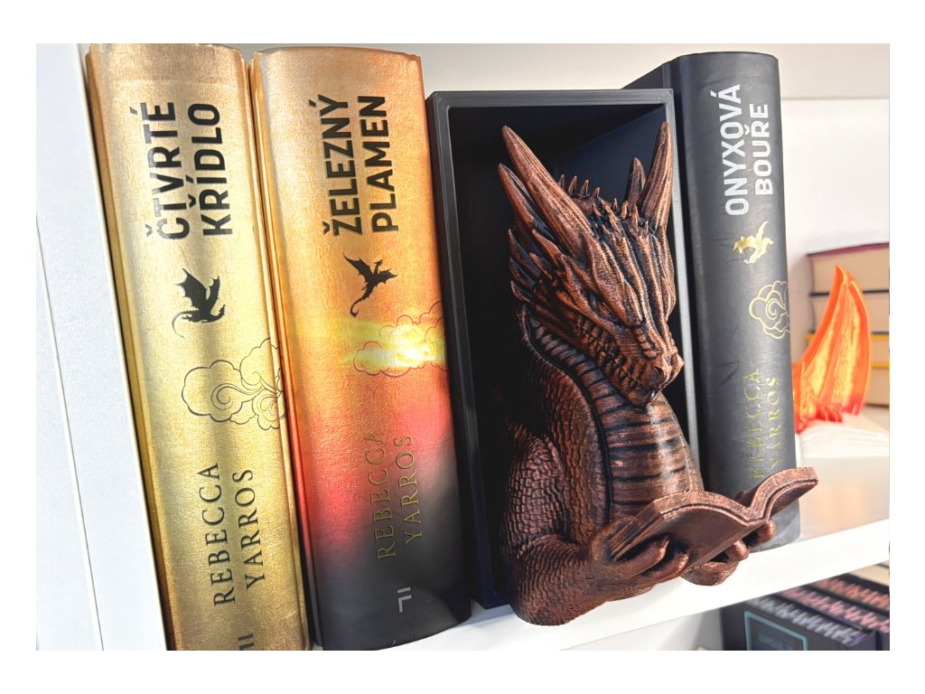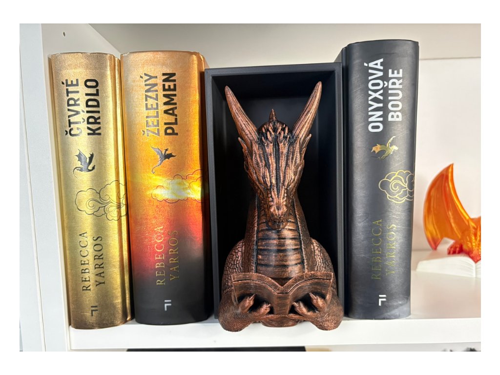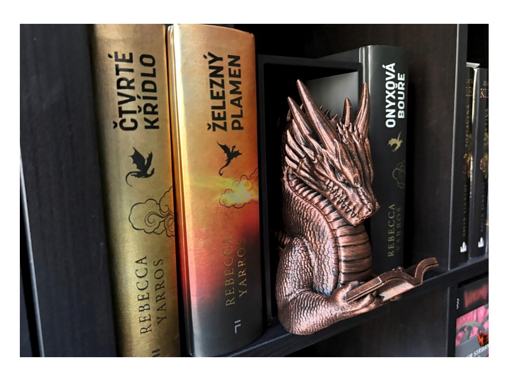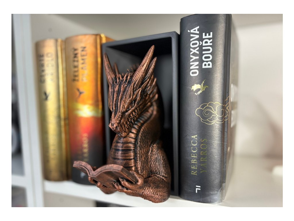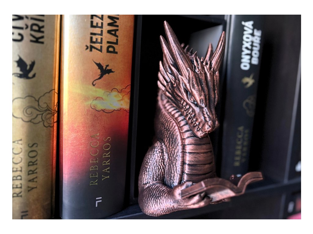 Připrav se na dechberoucí moment překvapení, kdy se mezi tvými knihami objeví dračí hlava, jakoby právě prolomila bariéru mezi fantasy světem a realitou. Tento 3D Book Nook nebo-li knižní zarážka je nejen originální dekorací, ale i mistrovským 3D tiskovým kouskem, který zaujme každého fanouška.
