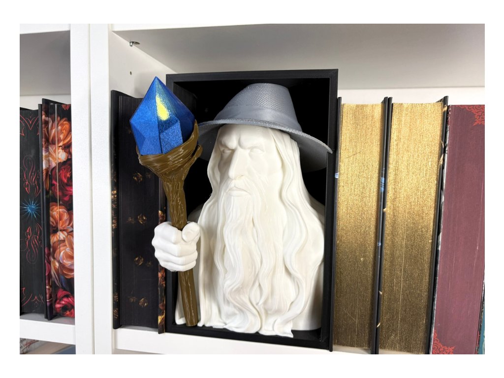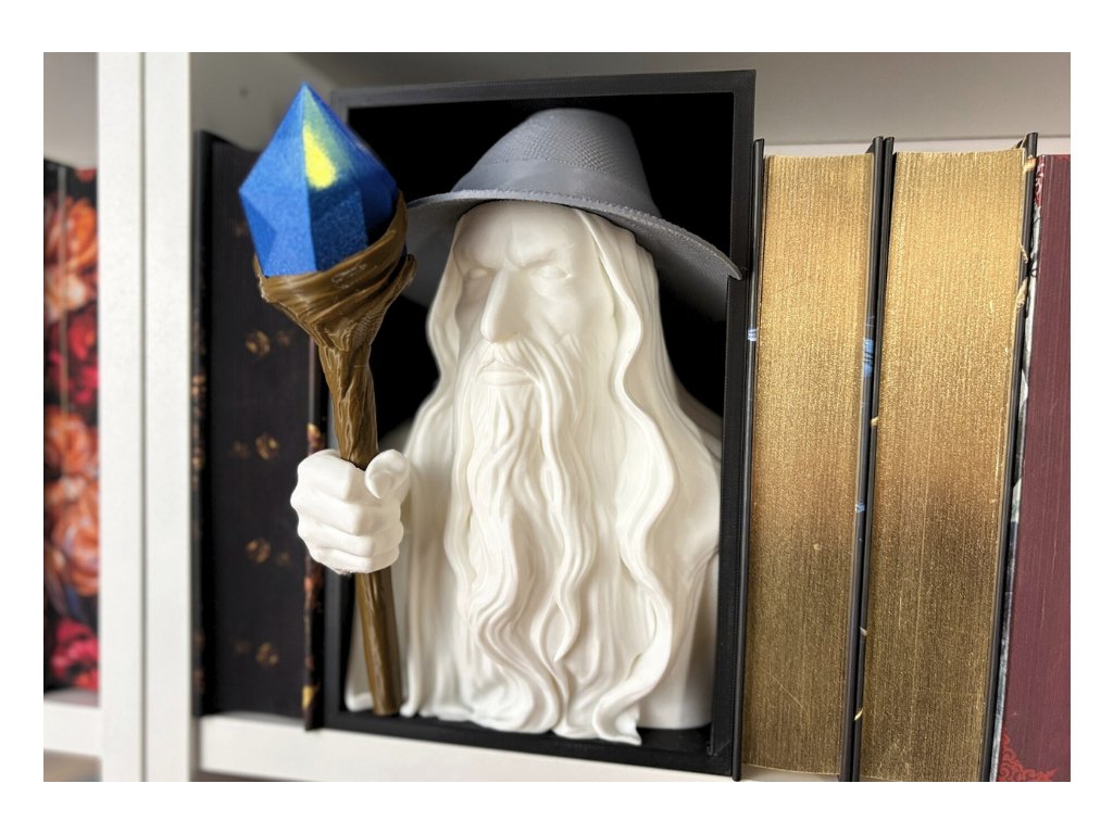 Připrav se na okamžik, kdy magie vstoupí přímo do tvé knihovny. Tento Šedý poutník působí, jako by právě vystoupil z poslední kapitoly tvého oblíbeného fantasy románu – hůl v ruce, pohled plný moudrosti a světlo připravené rozehnat tmu mezi příběhy. Je to víc než dekorace – je to brána do světa fantazie, který máš vždy na dosah ruky.