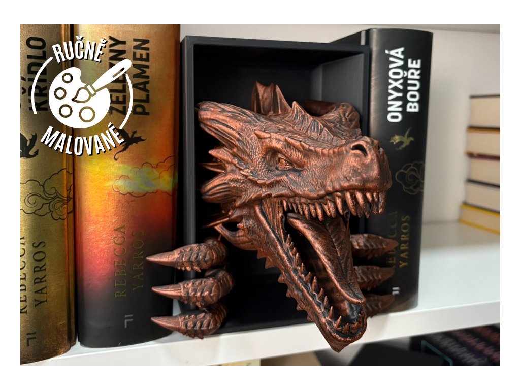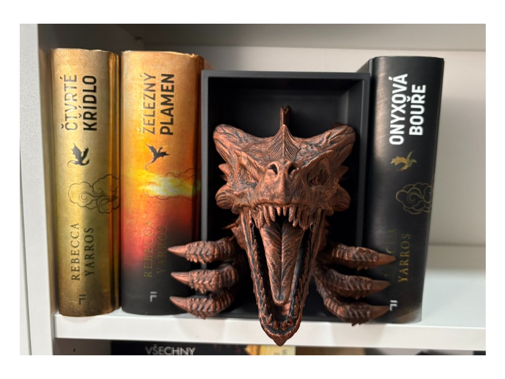 Připrav se na dechberoucí moment překvapení, kdy se mezi tvými knihami objeví dračí hlava, jakoby právě prolomila bariéru mezi fantasy světem a realitou. Tento 3D Book Nook nebo-li knižní zarážka je nejen originální dekorací, ale i mistrovským 3D tiskovým kouskem, který zaujme každého fanouška.