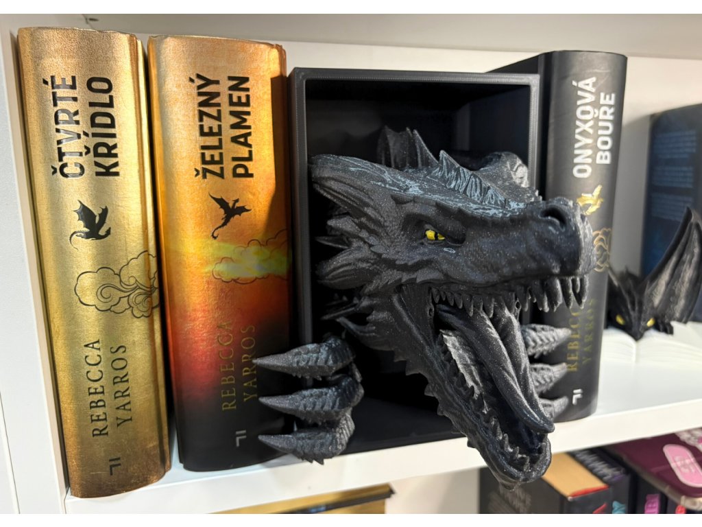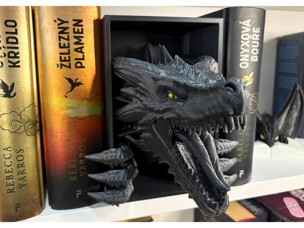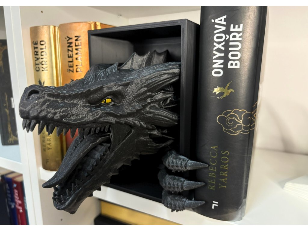 Připrav se na dechberoucí moment překvapení, kdy se mezi tvými knihami objeví dračí hlava, jakoby právě prolomila bariéru mezi fantasy světem a realitou. Tento 3D Book Nook nebo-li knižní zarážka je nejen originální dekorací, ale i mistrovským 3D tiskovým kouskem, který zaujme každého fanouška.