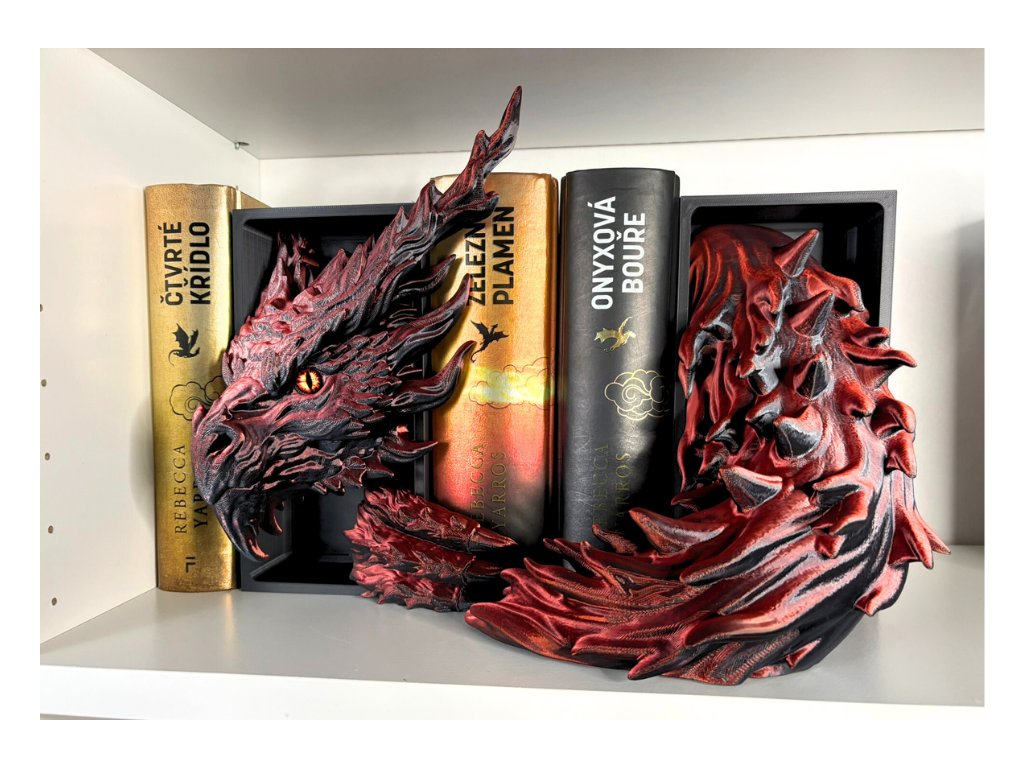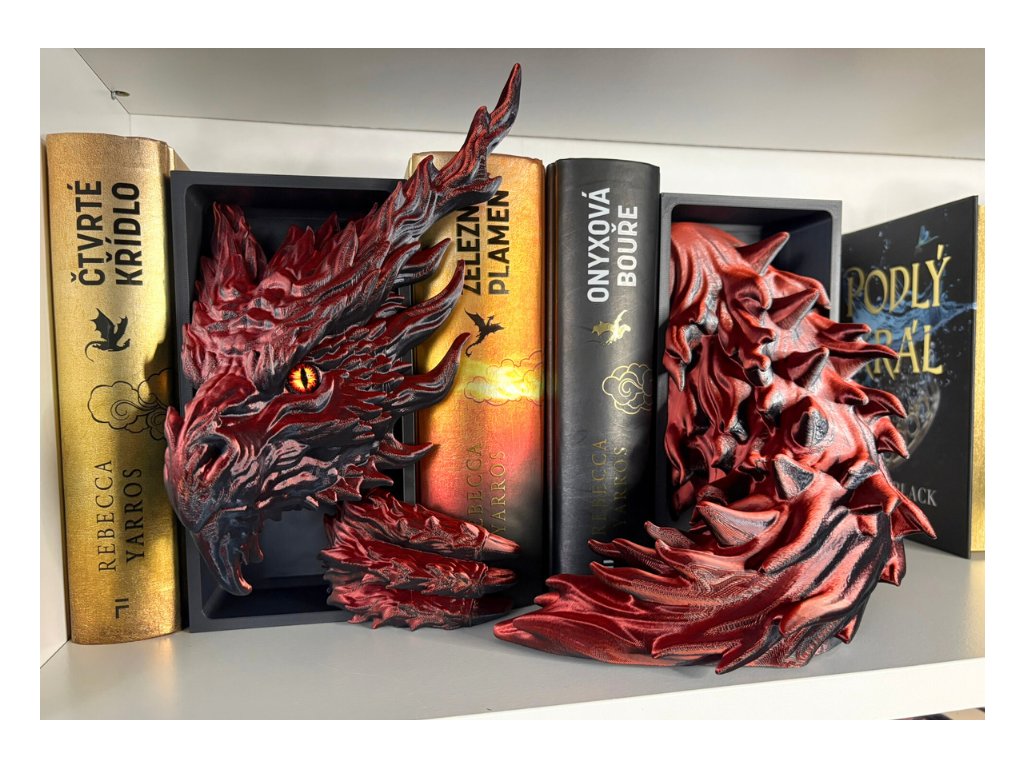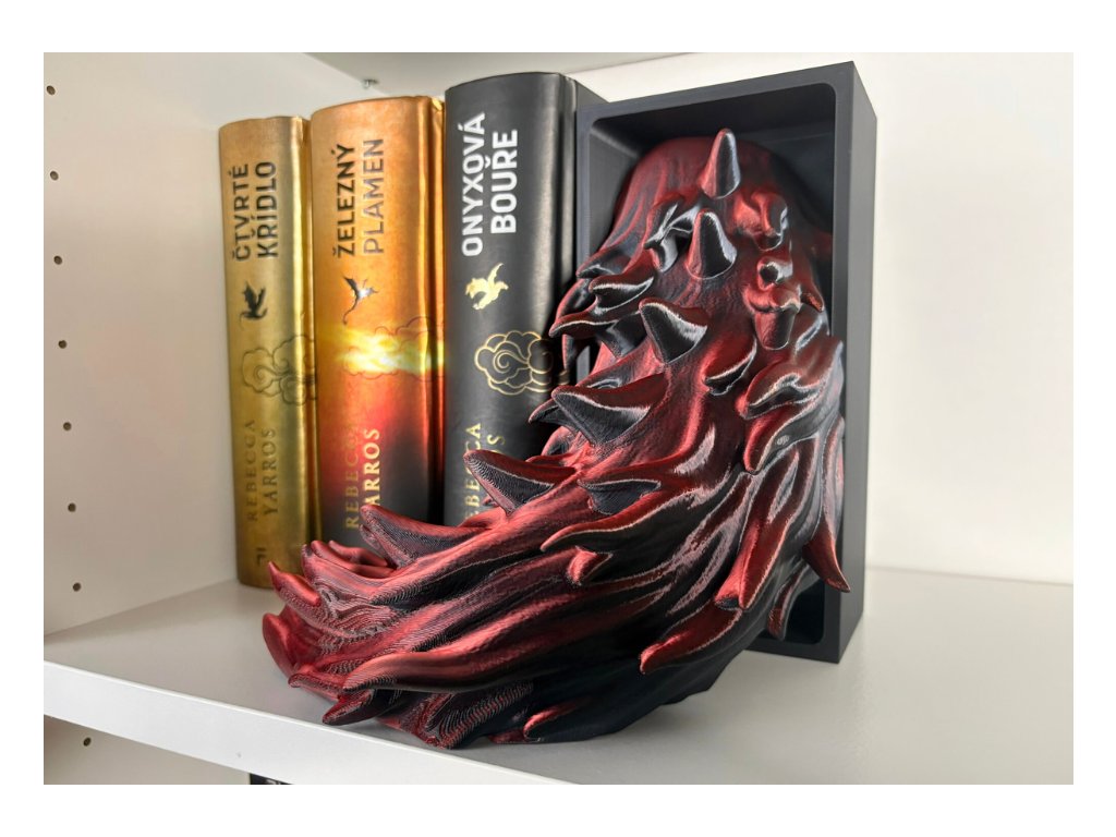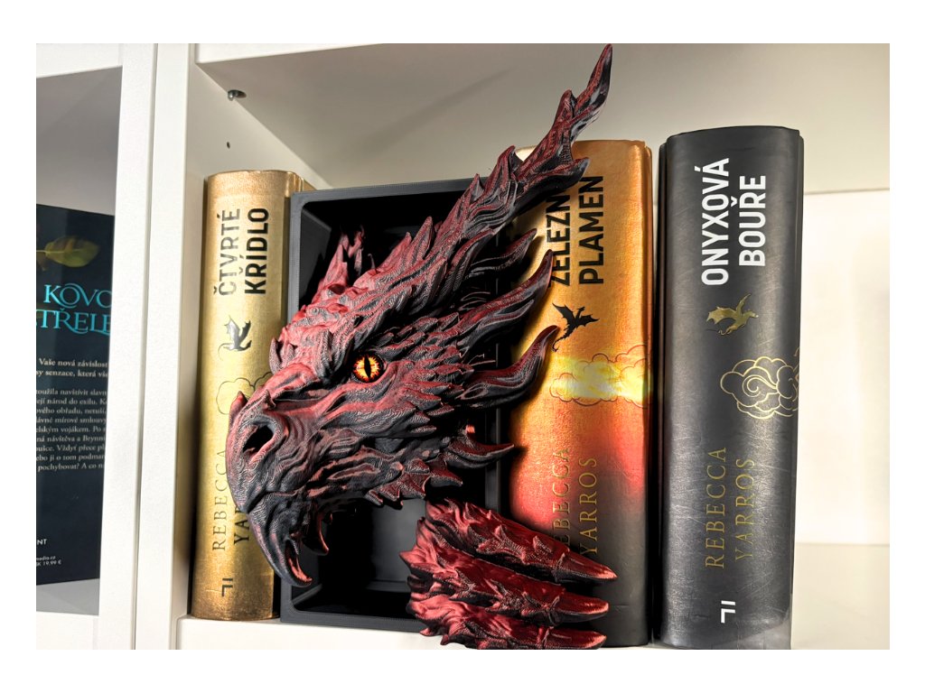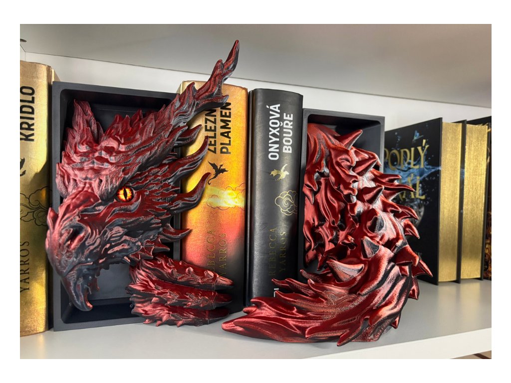 Připrav se na dechberoucí moment překvapení, kdy se mezi tvými knihami objeví dračí hlava - jakoby právě prolomila bariéru mezi fantasy světem a realitou. Tento 3D Book Nook neboli knižní zarážka, je nejen originální dekorací, ale také mistrovským 3D tištěným kouskem, který zaujme každého fanouška fantazie a příběhů.
