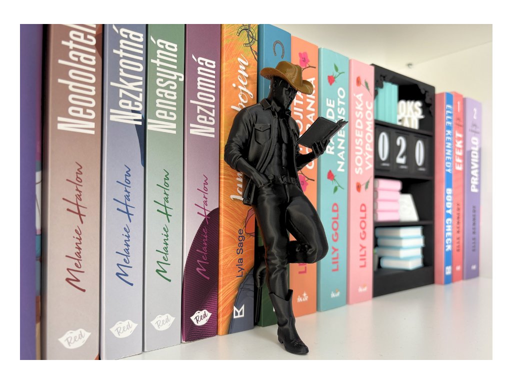 Tenhle book insert je pro čtenáře, co milují romantické kovboje, napětí mezi řádky a hrdiny, kteří radši jednají, než mluví. Přináší do knihovny atmosféru zaprášených rančů, horkých letních večerů a pohledů, které slibují víc, než je bezpečné. Klobouk stažený do čela. Pevný postoj. A v rukou příběh, který má sílu zkrotit i toho, kdo si myslel, že jeho srdce patří jen otevřené krajině. Stačí jeden pohled – a z obyčejné police je romantická scéna jako vystřižená z knihy, kde láska přichází pomalu… ale udeří naplno.