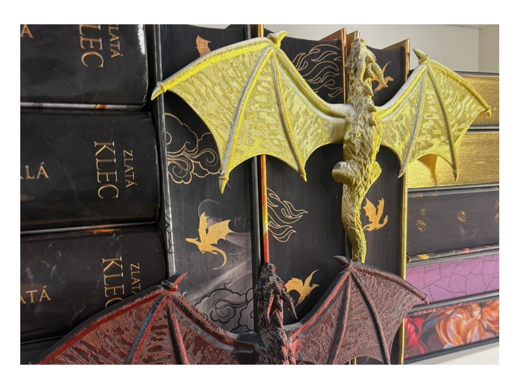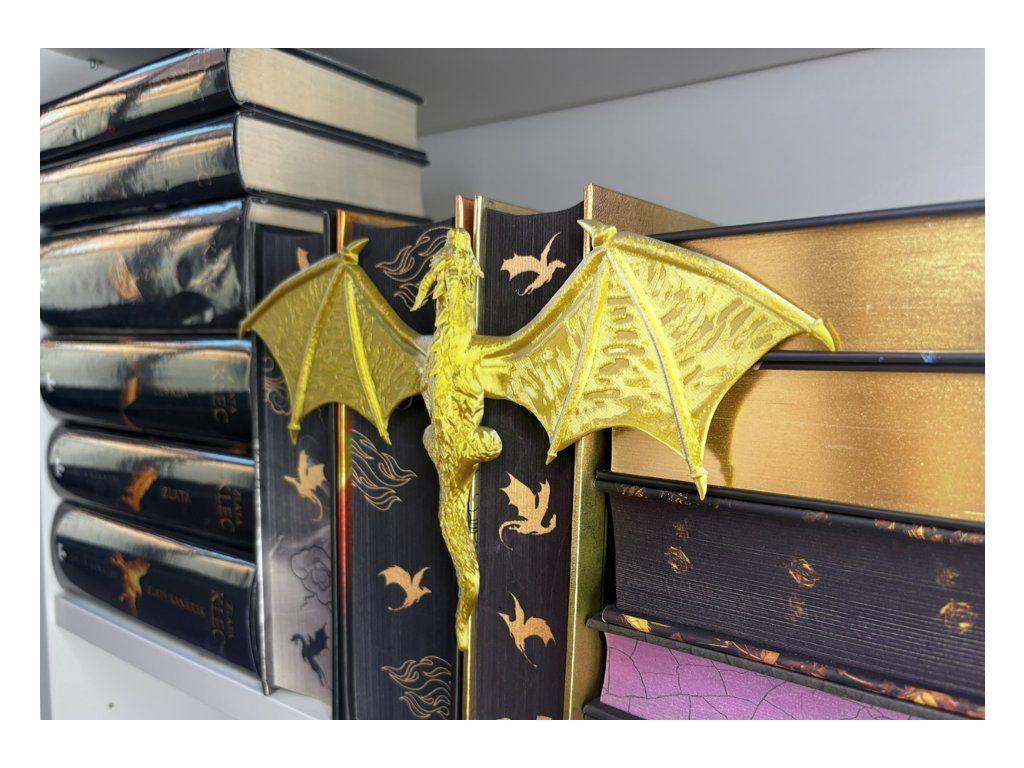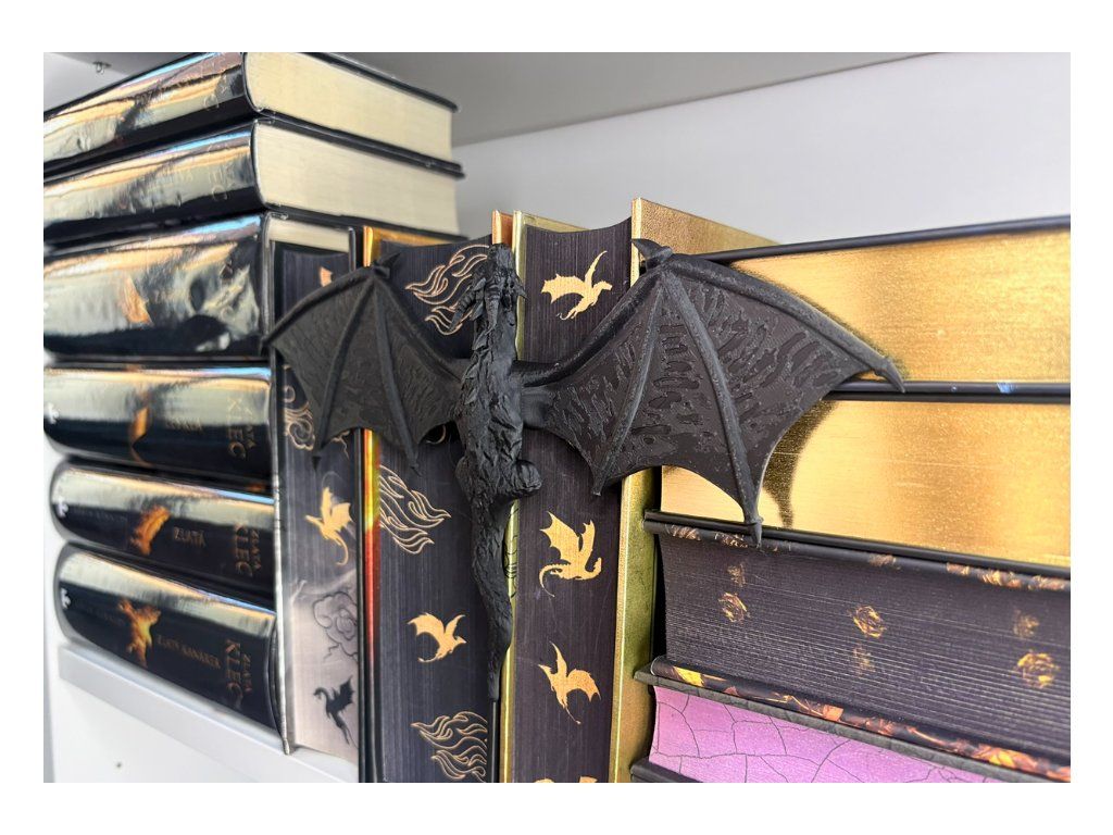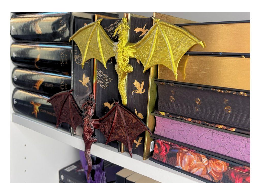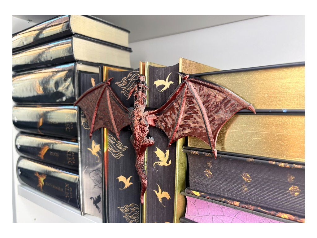 Mezi hřbety knih se drží drak, který jako by právě přiletěl z jiného světa. Rozpjatá křídla, šupiny zachytávající světlo a pohled strážce, který bdí nad každým příběhem tvé knihovny. Tento dračí insert promění obyčejnou polici v kousek fantasy světa. Vypadá, jako by se drak právě protáhl mezi knihami a rozhodl se zůstat – chránit příběhy, poklady a světy ukryté mezi stránkami.