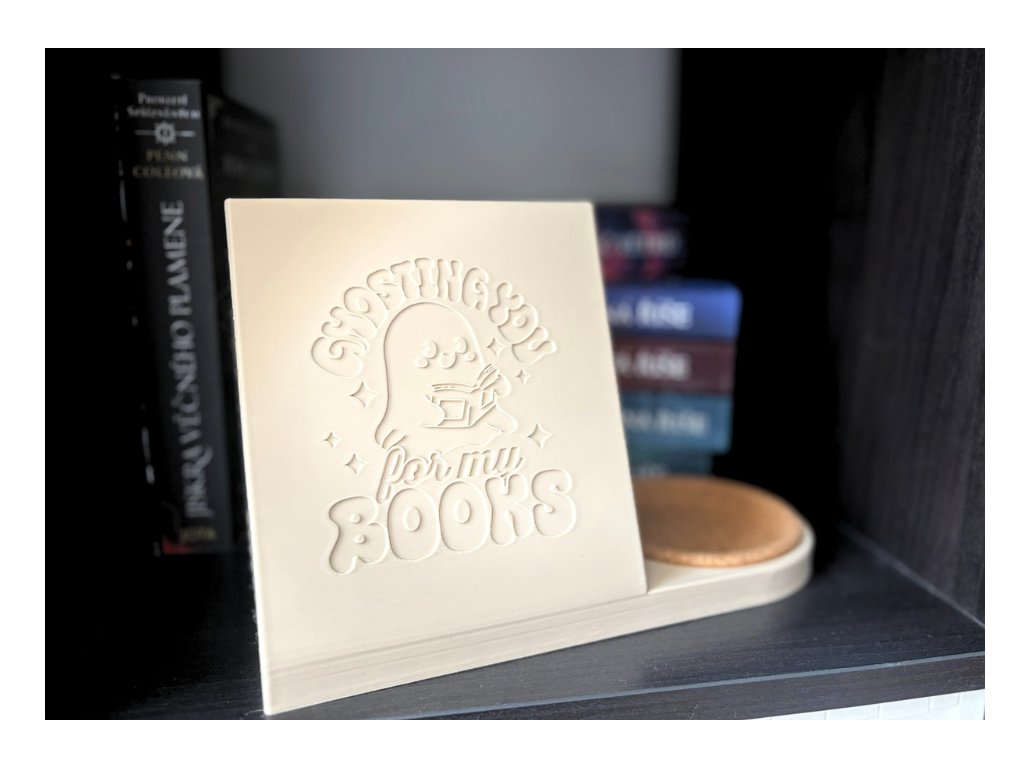 Stylový a praktický odkladač na rozečtenou knihu, vyrobený pomocí 3D tisku, je ideální společník pro každého čtenáře. Už žádné shánění záložky nebo pokládání knihy „někam“ – stačí ji odložit na připravené místečko a příběh na tebe počká.