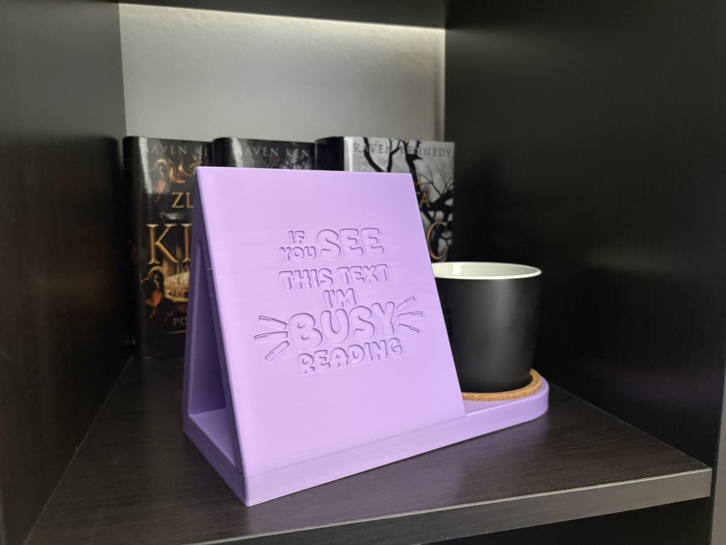 Stylový a praktický odkladač na rozečtenou knihu, vyrobený pomocí 3D tisku, je ideální společník pro každého čtenáře. Už žádné shánění záložky nebo pokládání knihy „někam“ – stačí ji odložit na připravené místečko a příběh na tebe počká.