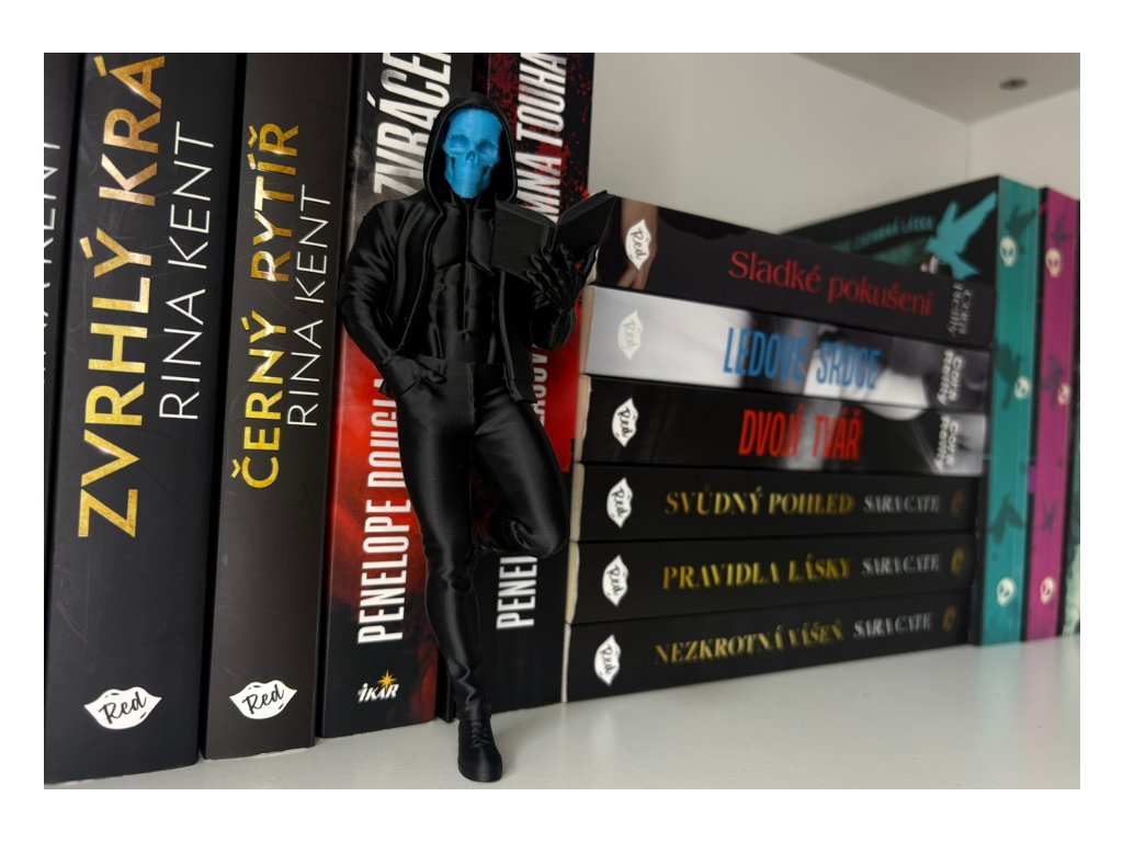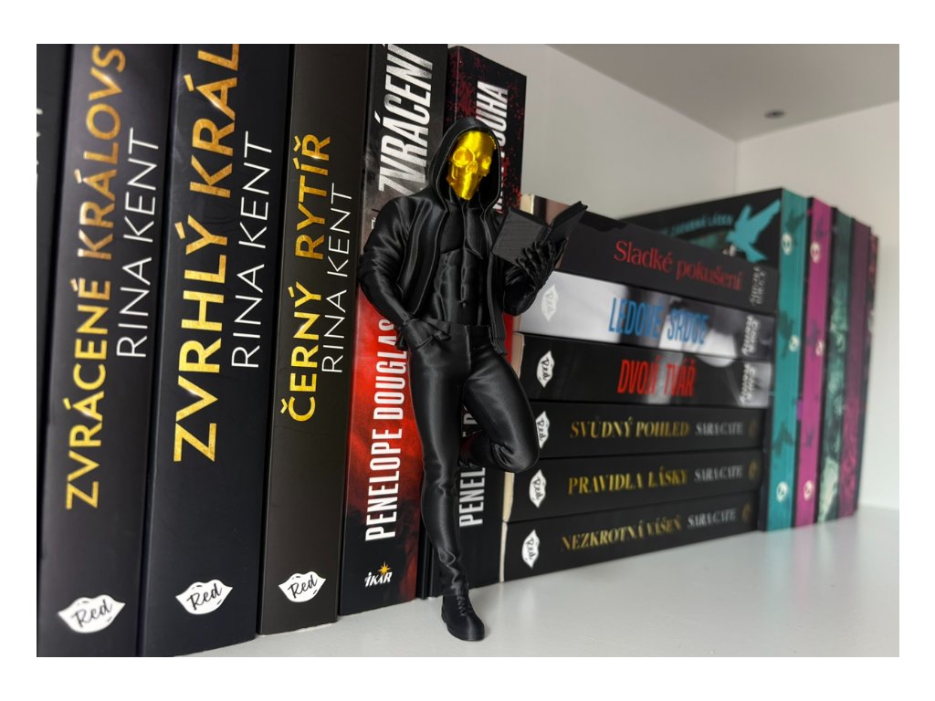 Tenhle kousek je pro čtenářky, které milují temné romance, nebezpečné hrdiny a napětí, co se dá krájet. Maskovaný muž s knihou přináší do knihovny ticho před bouří, zakázaný nádech a energii, která okamžitě změní atmosféru celé police. Je to přesně ten typ hrdiny, co stojí ve stínu, sleduje… a když si vybere příběh, nejde o nic nevinného. Jeden pohled stačí a z obyčejné knihovny je scéna z temné romance, kde světla zhasínají příliš brzy.